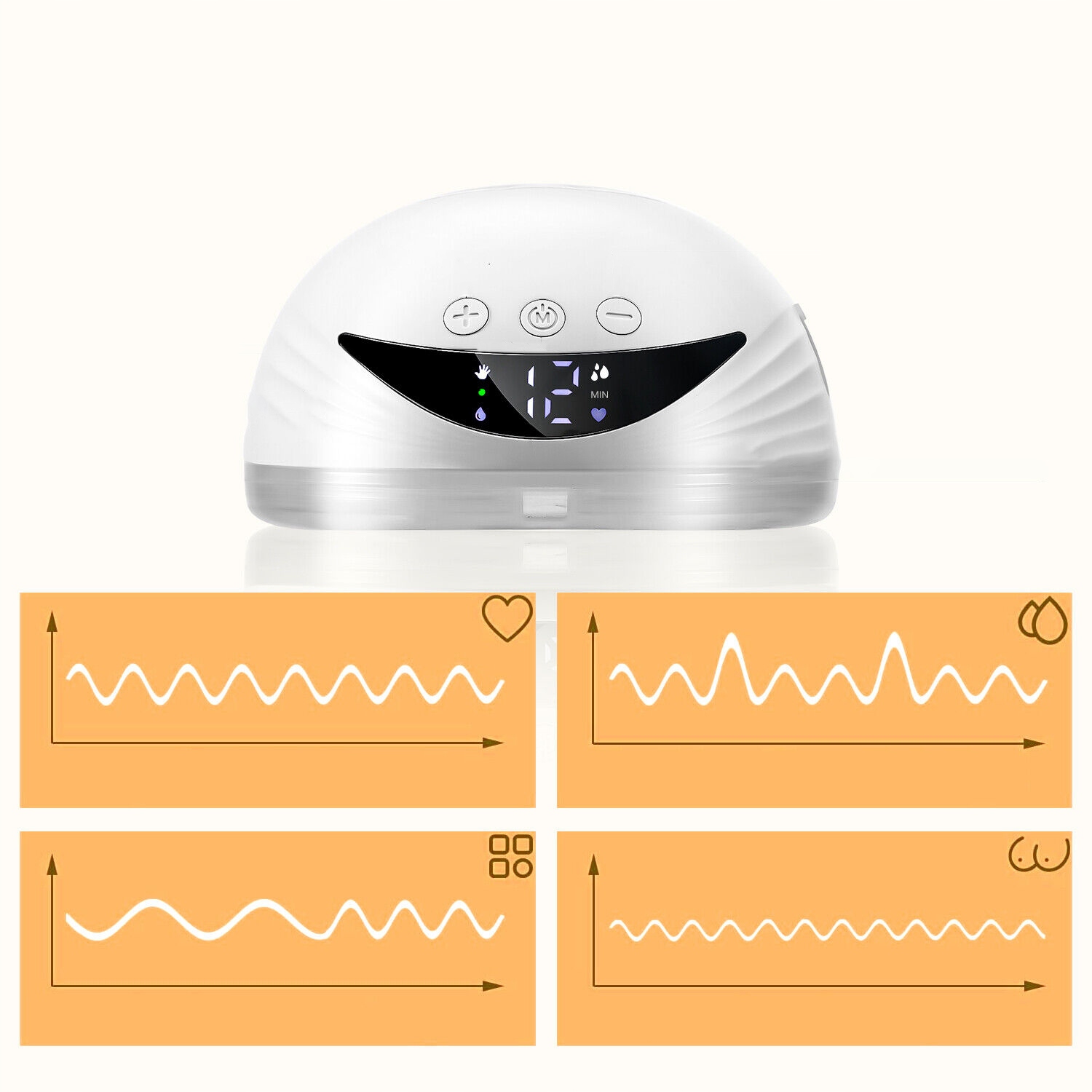 - ✔ Он имеет четыре режима: режим массажа (12 уровней), автоматический режим (12 уровней), режим отвлечения молочной железы (12 уровней) и режим переменной частоты (12 уровней).