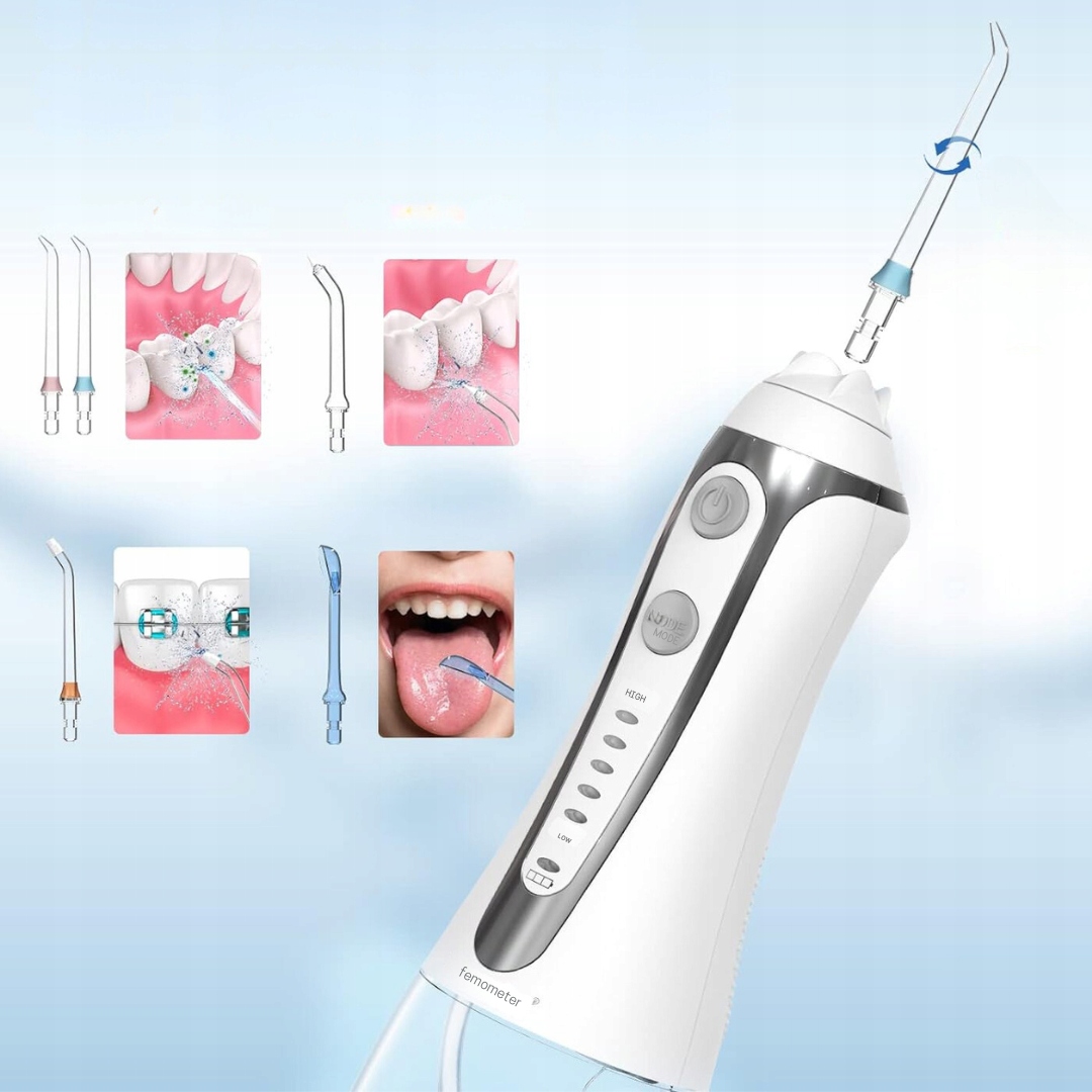 беспроводной женскую ирригатор для рта, дома, перемещения, 5 режимов и 5 форсунок, водостойкость IPX7, 300 мл резервуара для воды, гравитационный шарик. h1>