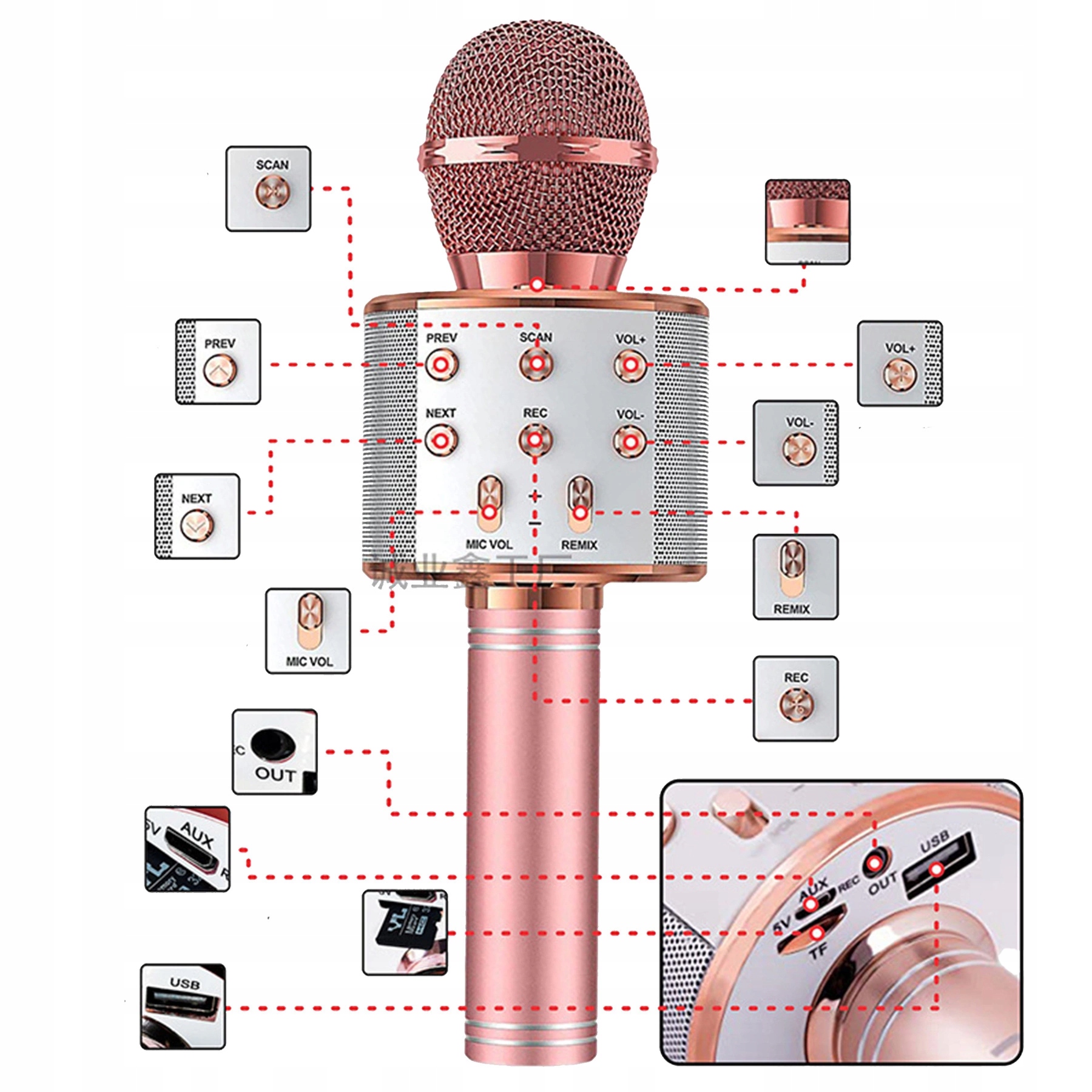 БЕСПРОВОДНОЙ КАРАОКЕ-МИКРОФОН BLUETOOTH ДИНАМИК РОЗОВЫЙ ИДЕАЛЬНЫЙ ПОДАРОК