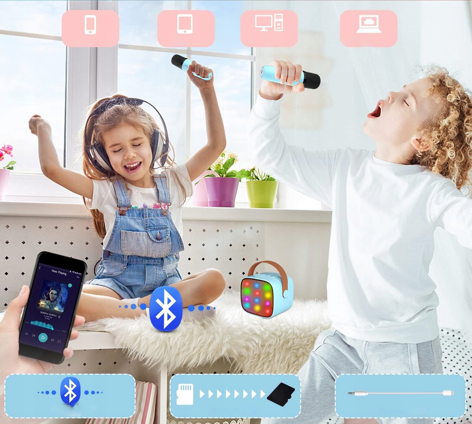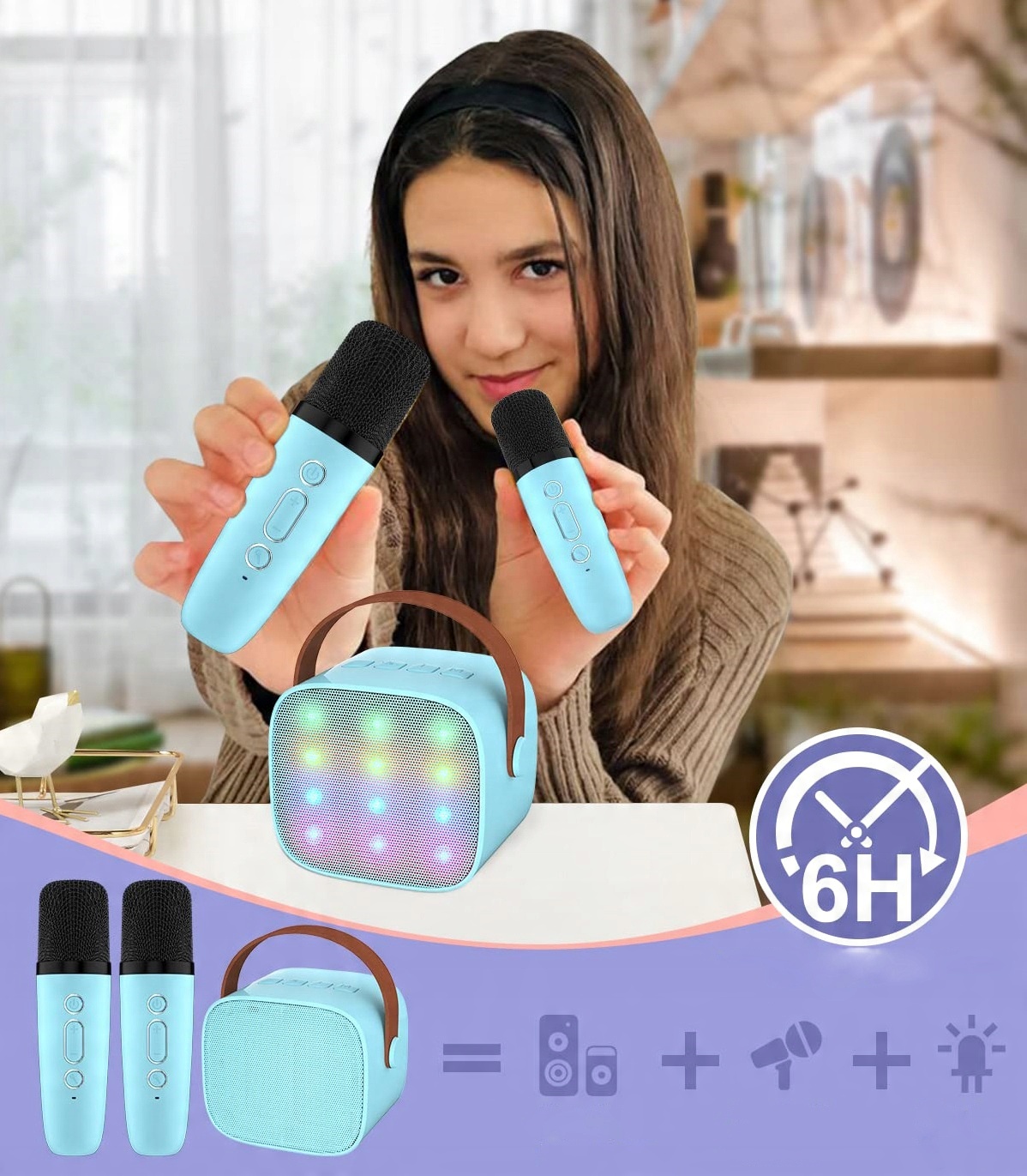 🎤Встроенная аккумуляторная батарея караоке-машины может работать от 5 до 10 часов при полной зарядке. Позвольте вам наслаждаться караоке без перерыва. Идеально подходит для дней рождения, Рождества, вечеринок и других мероприятий на свежем воздухе. Эту детскую караоке-машину можно использовать как караоке-систему, музыкальный плеер, динамик с микрофоном и так далее. (Вы также можете использовать динамик без микрофона.)