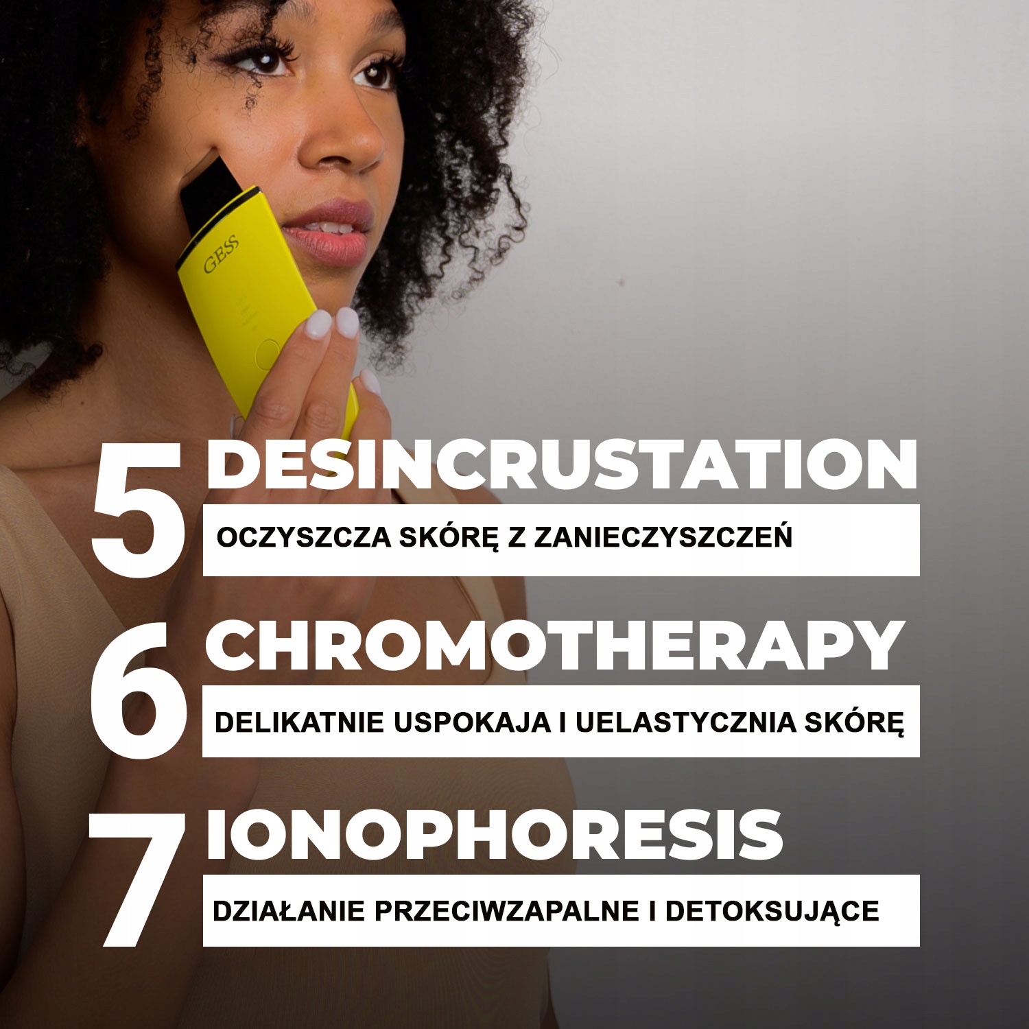 GESS Exotic — профессиональная беспроводная ультразвуковая мойка для лица 7 в 1. Используется для глубокого очищения и тонизирования кожи лица и декольте. Устройство для очищения пор предлагает 7 процедур. Вы можете выбрать наиболее оптимальную программу для вашего типа кожи и проводить профессиональные процедуры дома:
