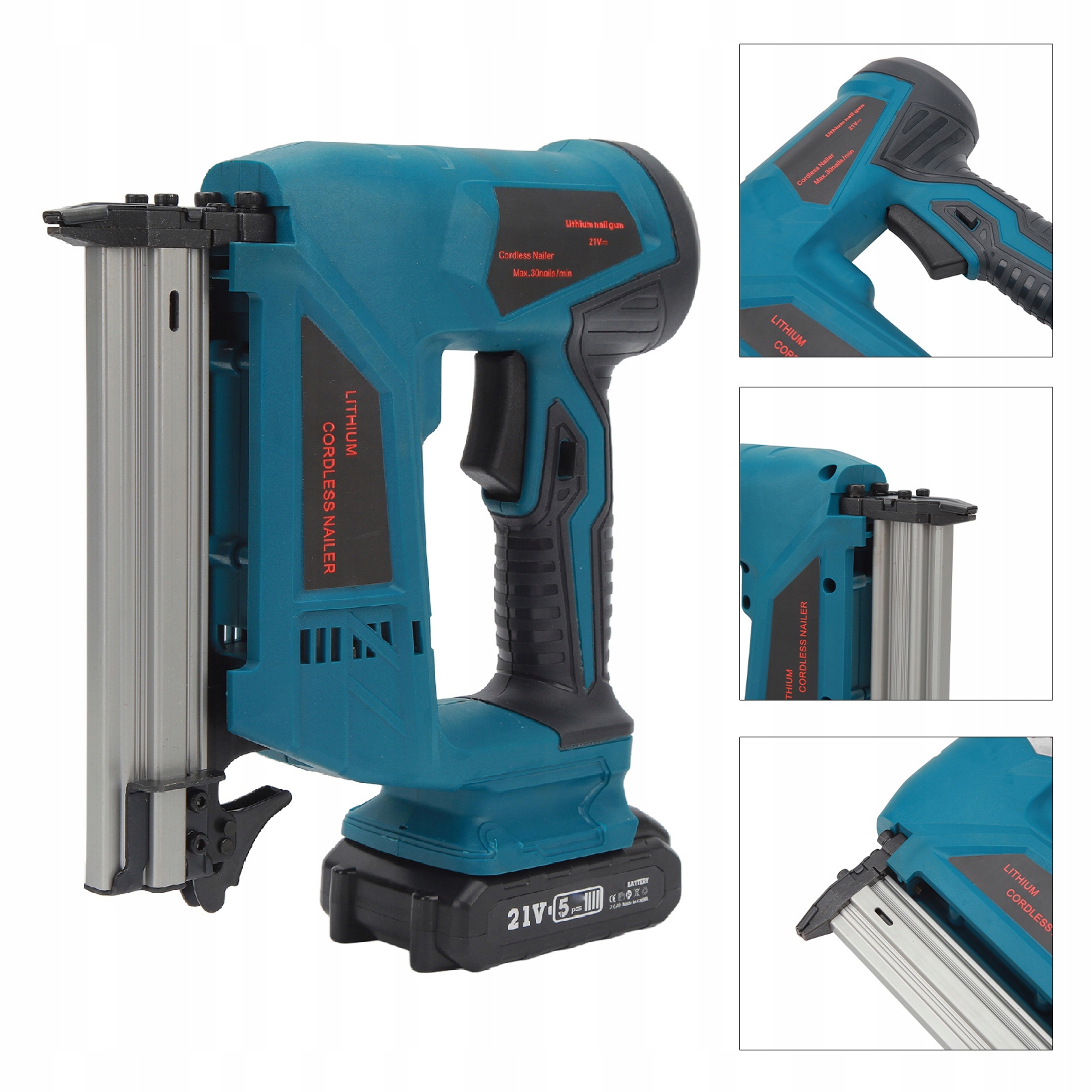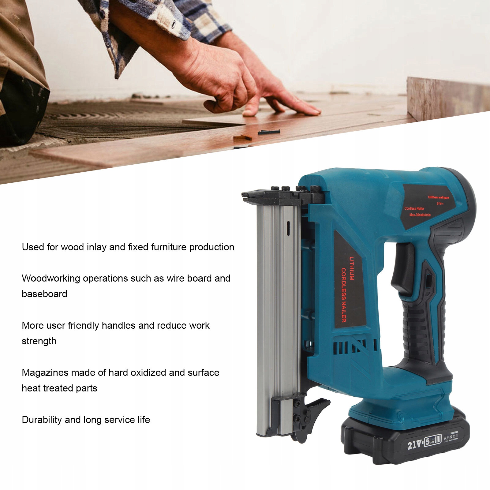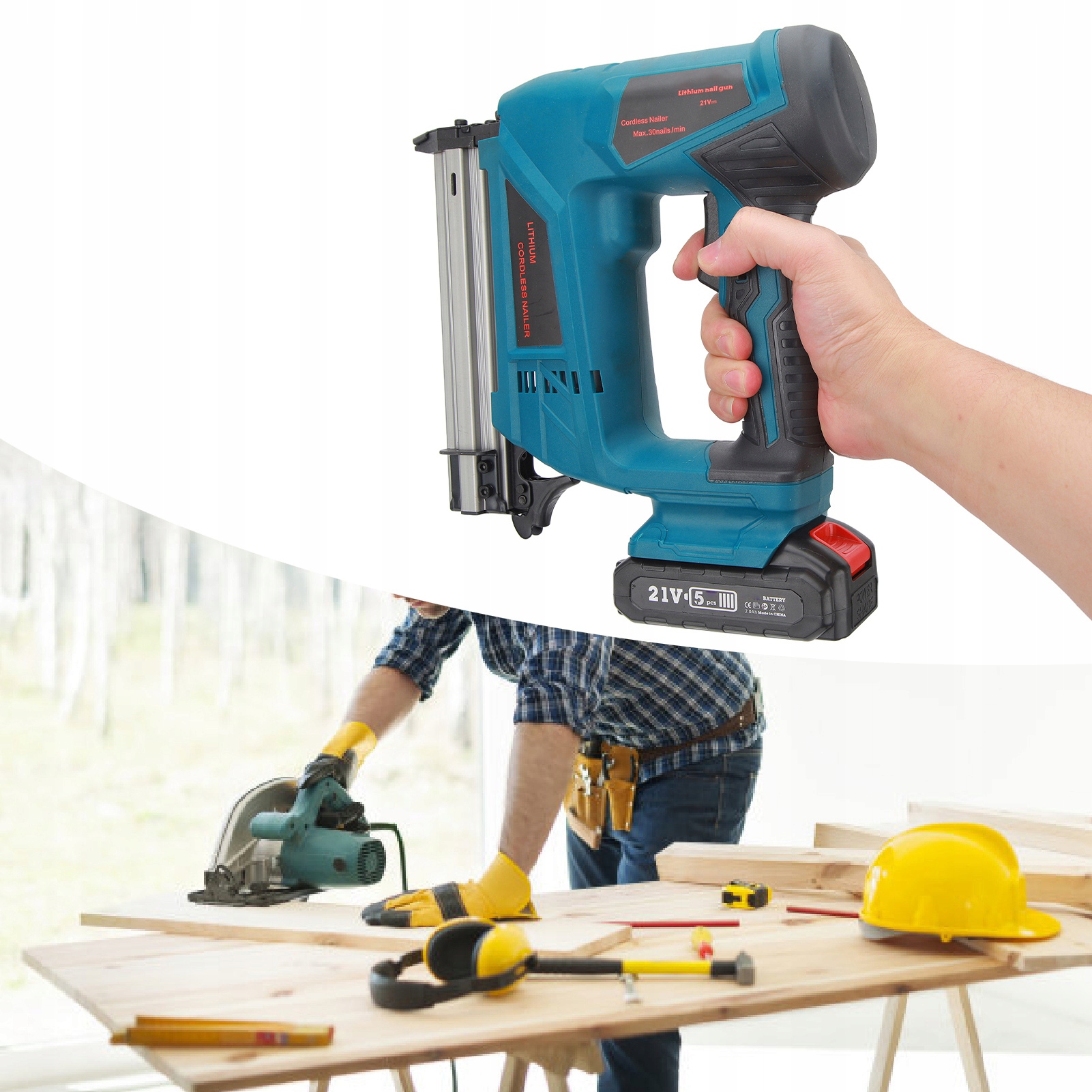 5. ИНФОРМАЦИЯ ОБ БАТАРЕЕ: Беспроводной гвоздезабивной пистолет с 1 литиевой батареей и зарядным устройством, который является практичным и незаменимым инструментом для работы по дереву.