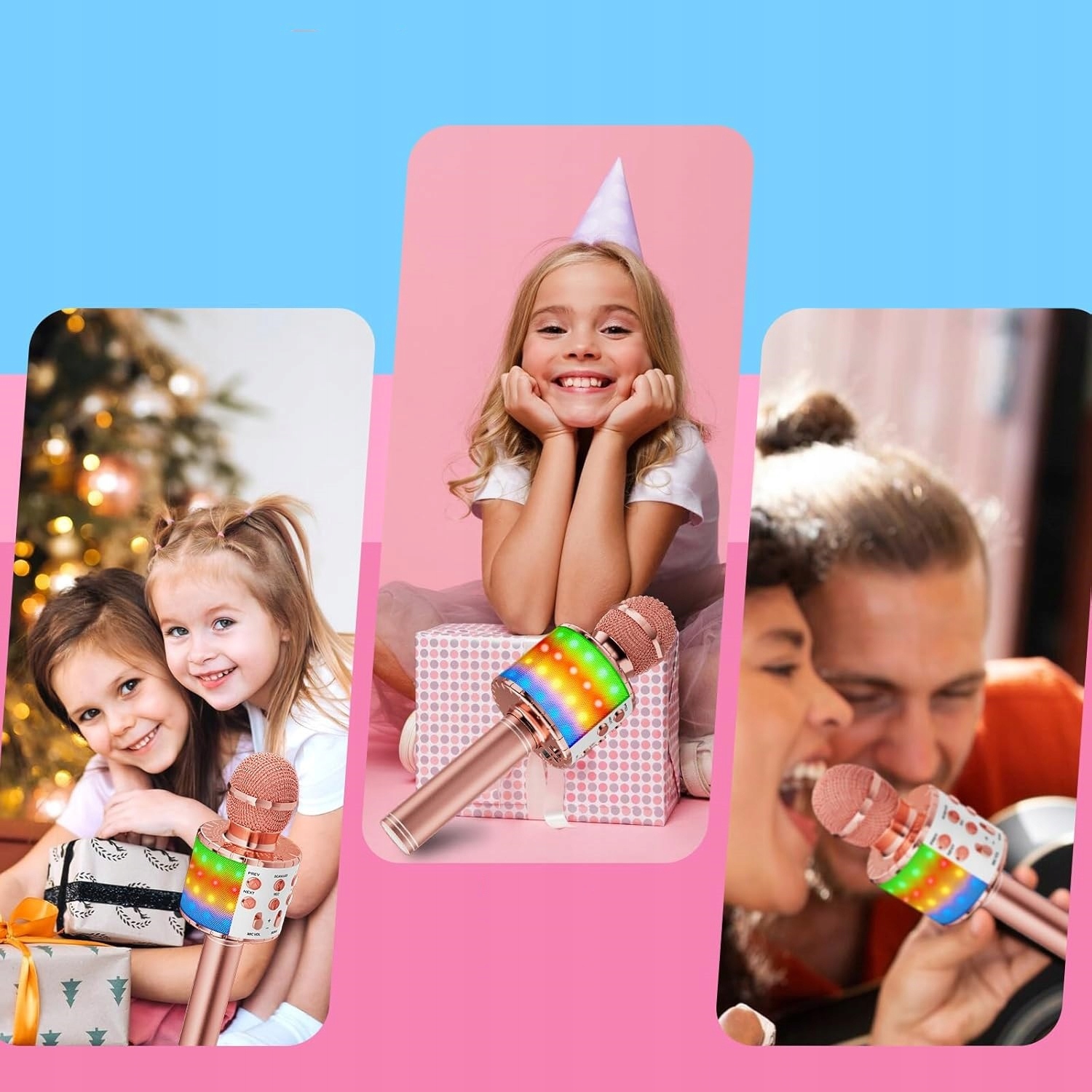 БЕСПРОВОДНОЙ СВЕТОДИОДНЫЙ КАРАОКЕ-МИКРОФОН BLUETOOTH ДЛЯ ДЕТЕЙ 3-12 ЛЕТ, РОЗОВЫЙ
