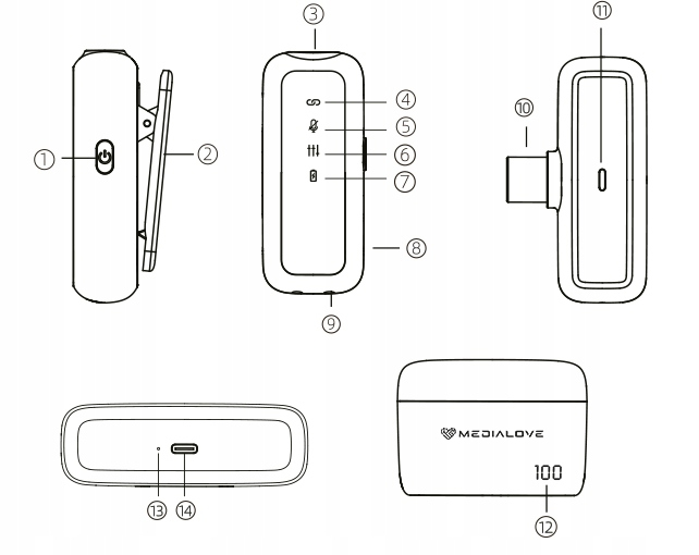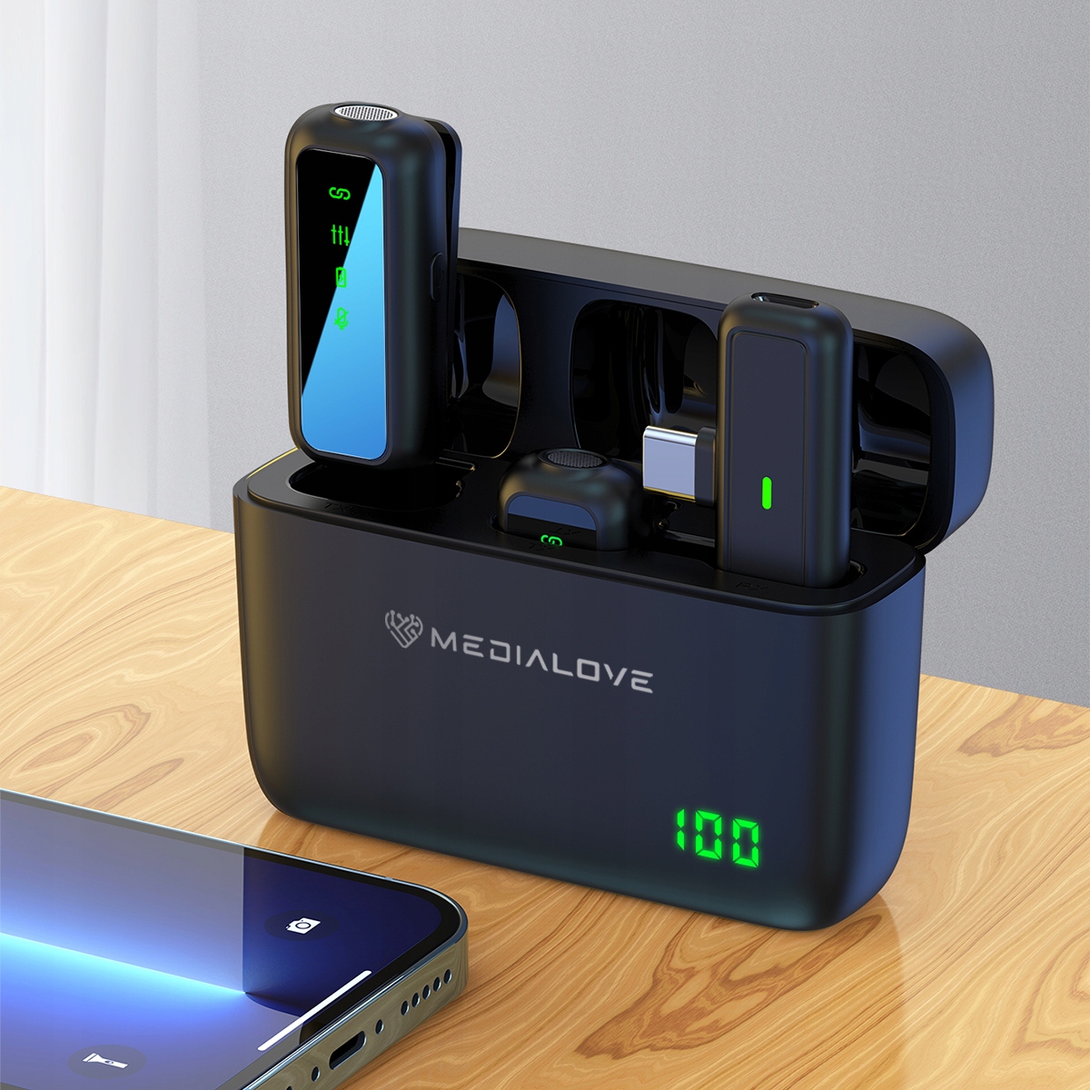 БЕСПРОВОДНЫЕ МИКРОФОНЫ 2 MEDIALOVE USB C MICROPHONES APPLE ANDROID POWERBANK