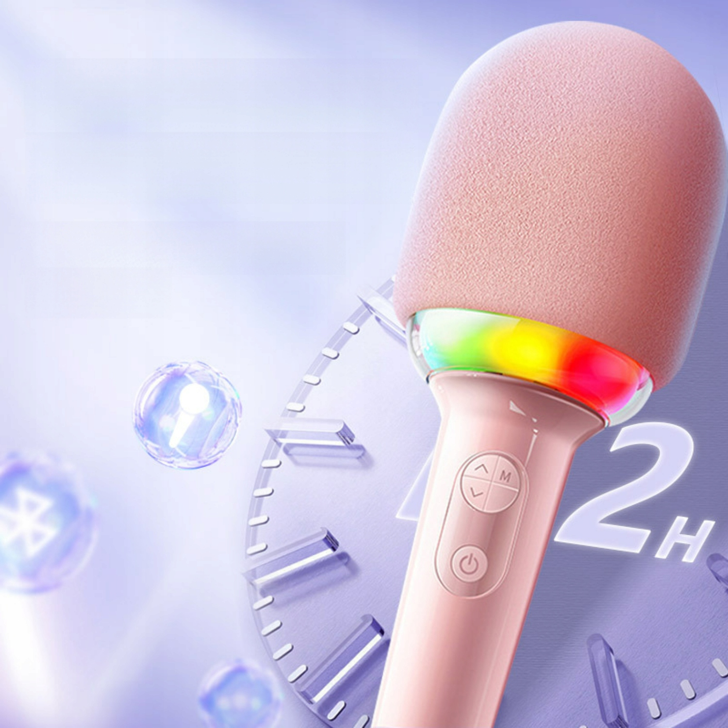 Идеально подходит для домашних мероприятий, для сольных упражнений или в качестве подарка, это устройство 2 в 1 сочетает в себе высококачественный микрофон и два сильных динамика с емкостью 5 Вт, обеспечивая звук привыкания. Благодаря непосредственному сочетанию Bluetooth, 5 забавных голосовых эффектах и динамическому освещению RGB, каждое выступление станет незабываемым!