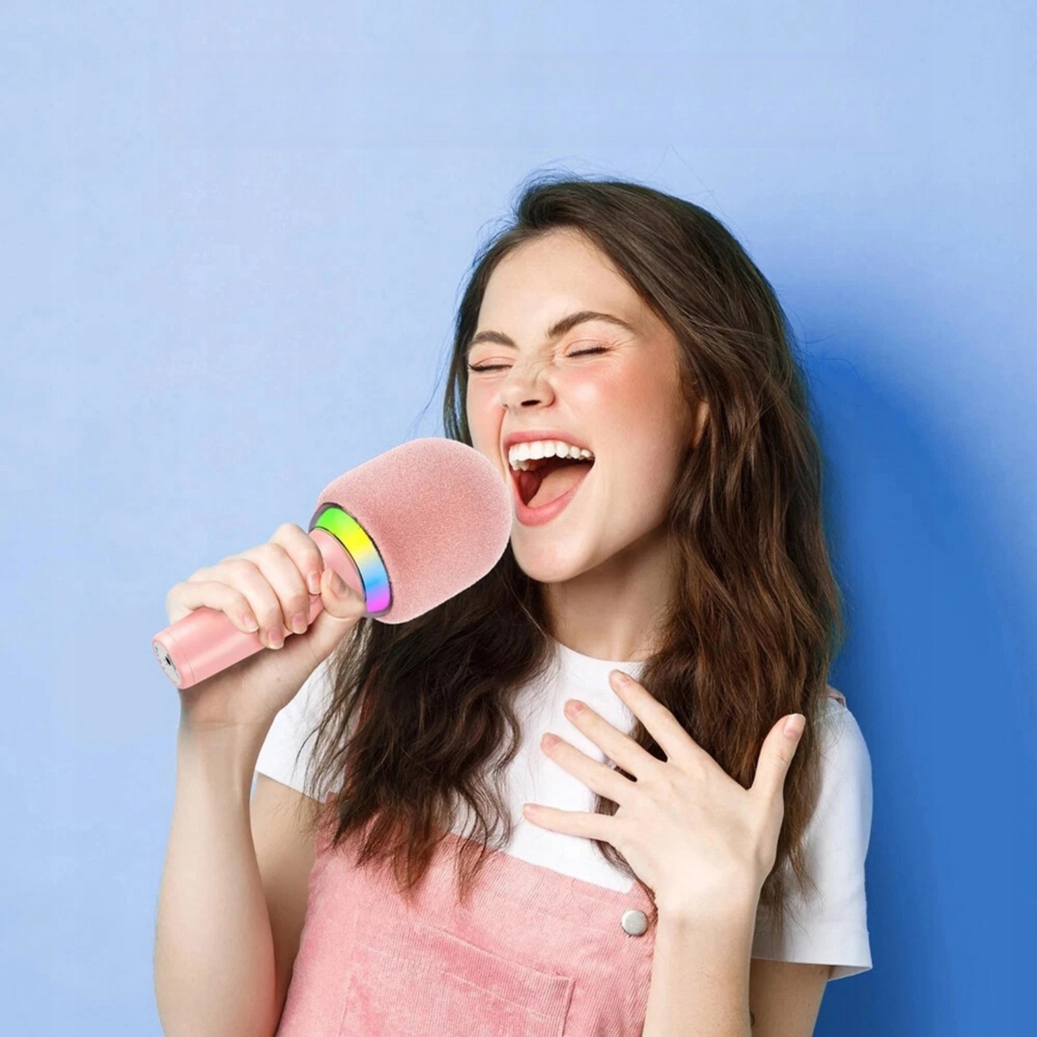 Караоке -микрофон со светодиодами, беспроводной динамик Bluetooth, розовый h2>