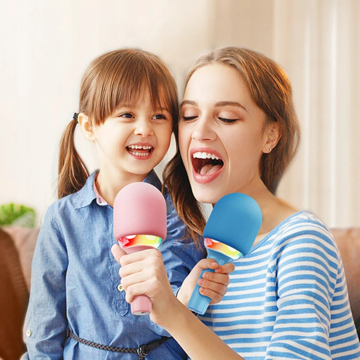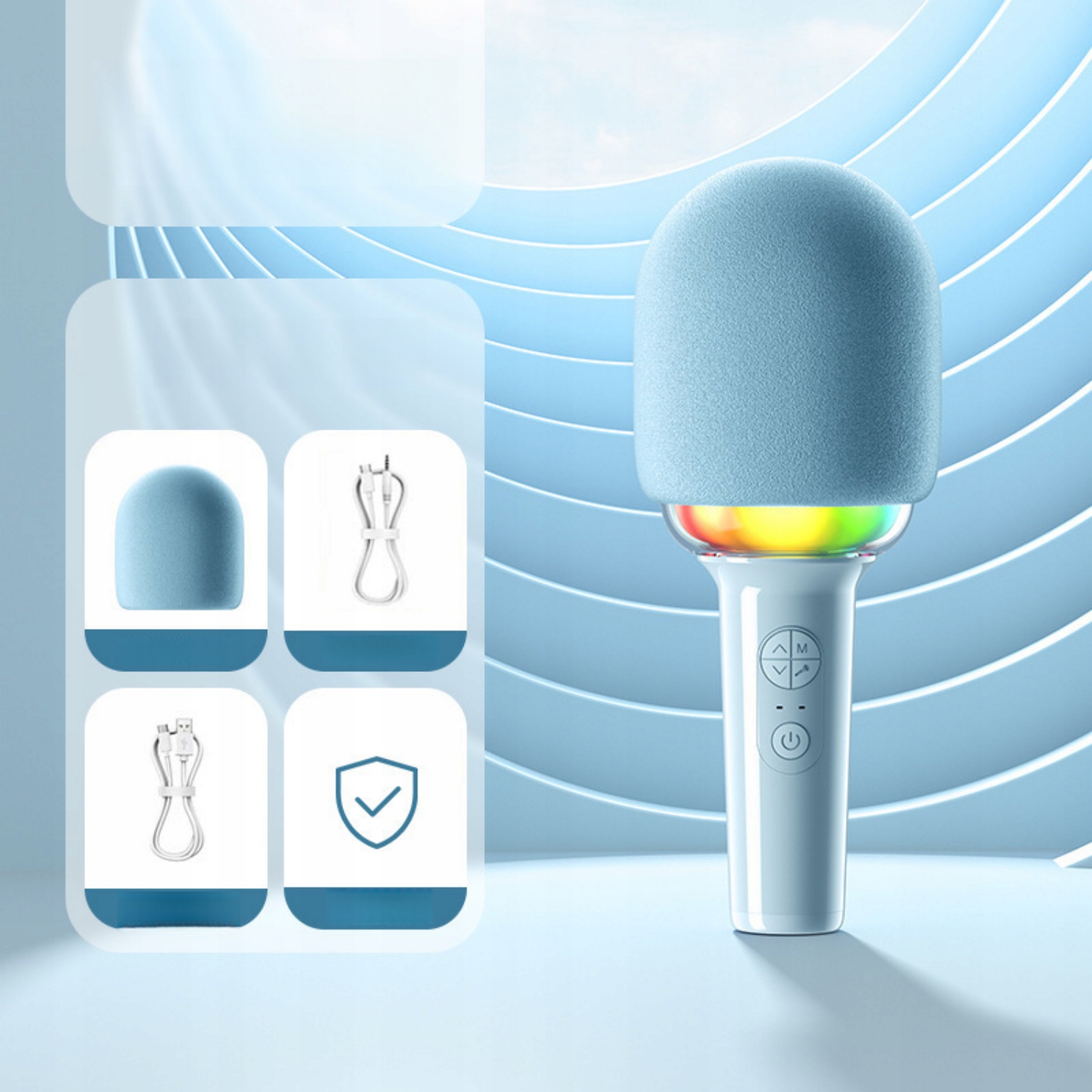 - Благодаря простоте управления, разнообразным световым эффектам и насыщенному звуку этот микрофон идеально подходит для людей всех возрастов. Идеально подходит в качестве подарка, для развлечения, уроков пения или семейных выступлений. Современный дизайн и прочная конструкция обеспечивают не только превосходное качество звука, но и великолепный внешний вид. Это идеальный выбор для караоке-вечеринок!