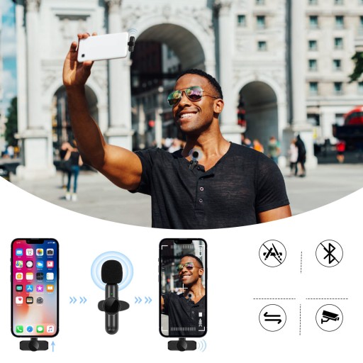 Беспроводной мини-микрофон с 2 микрофонами и 1 приемником может одновременно записывать два источника звука. Также возможно использовать только один микрофон. Нагрудный микрофон может синхронизировать фоновую музыку iPhone и человеческий голос в режиме реального времени, обеспечивая полноценный профессиональный звук. Идеально подходит для YouTube, Facebook, TiktTok, Podd. Актеры, влоги, интервью, прямые эфиры и прочее для любителей видеотворчества.