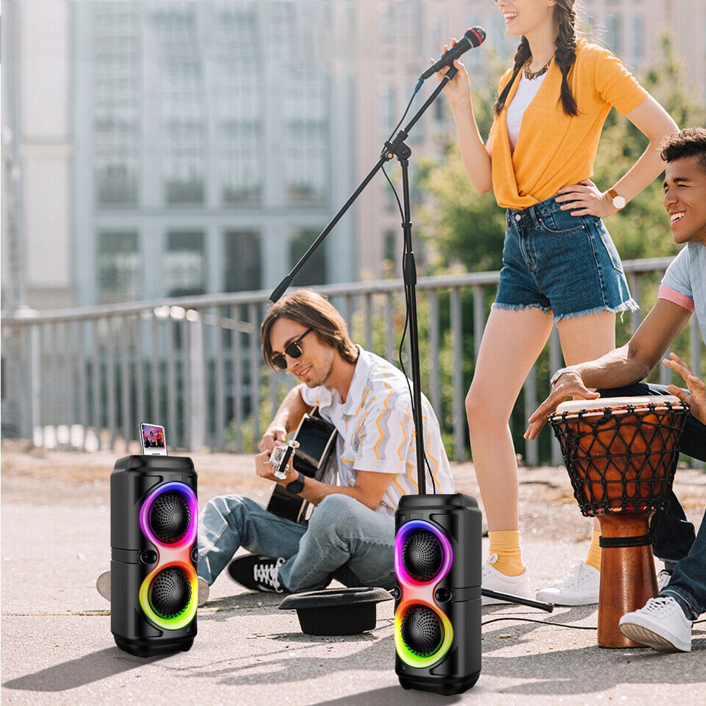 🎤 Speed Bluetooth -динамик, два динамика, стерео -сабвуфер для вечеринки, RGB освещение, караоке, сильный бас с микрофоном h2>