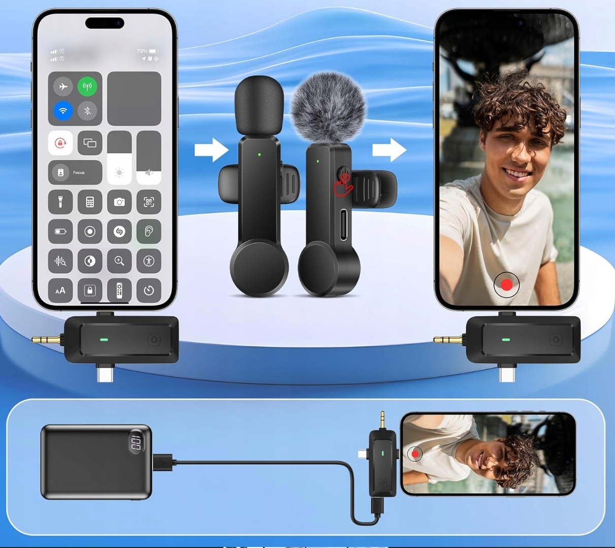 Улучшенный беспроводной микрофон HJ-K15 оснащен универсальным приемником 3-в-1, поэтому вам не придется использовать несколько кабелей или адаптеров.