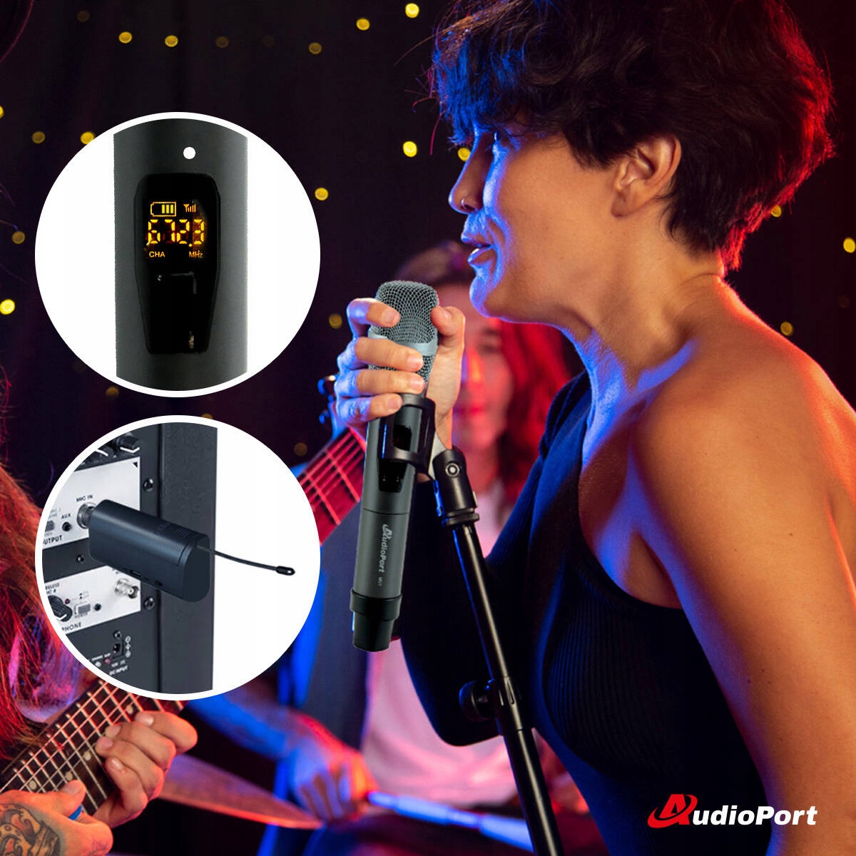 Ресивер Audioport — это компактное и удобное решение, которое можно напрямую подключить через разъем 6,3 мм к аудиосистемам, таким как микшеры, усилители или звуковые системы. Благодаря работе в диапазоне ДМВ он обеспечивает стабильную и без помех передачу звука.