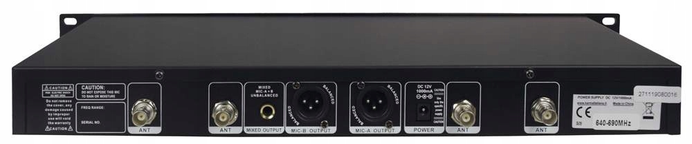 Двойной комплект перенаправления беспроводных микрофонов УВЧ. В комплект входят 2 ручных микрофона и приемник. 100 дополнительных частот УВЧ для каждого канала в диапазоне 640-690МГц. ЖК-дисплей на приемнике и передатчиках. Передатчики питаются от 2 батареек типа АА по 1,5 В. Радиус действия микрофона 80 метров. Микрофон идеально подходит для пения и разговора. Синхронизация передатчиков через ИК-интерфейс. Включает балансные (XLR) выходы для каждого канала отдельно и небалансный (разъем 6,3 мм) смешанный выход. Ресивер предназначен для установки в 19-дюймовую стойку.