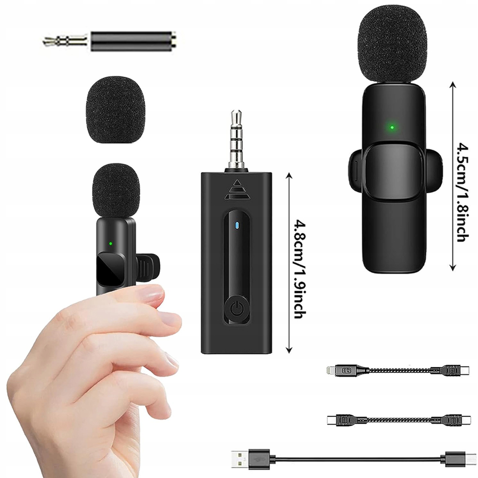 Беспроводные петличные микрофоны K35 для iPhone и Android, 2 профессиональных беспроводных петличных микрофона, мини-беспроводной петличный микрофон с 3 кабельными адаптерами для камеры, ноутбука, Facebook, Youtube.