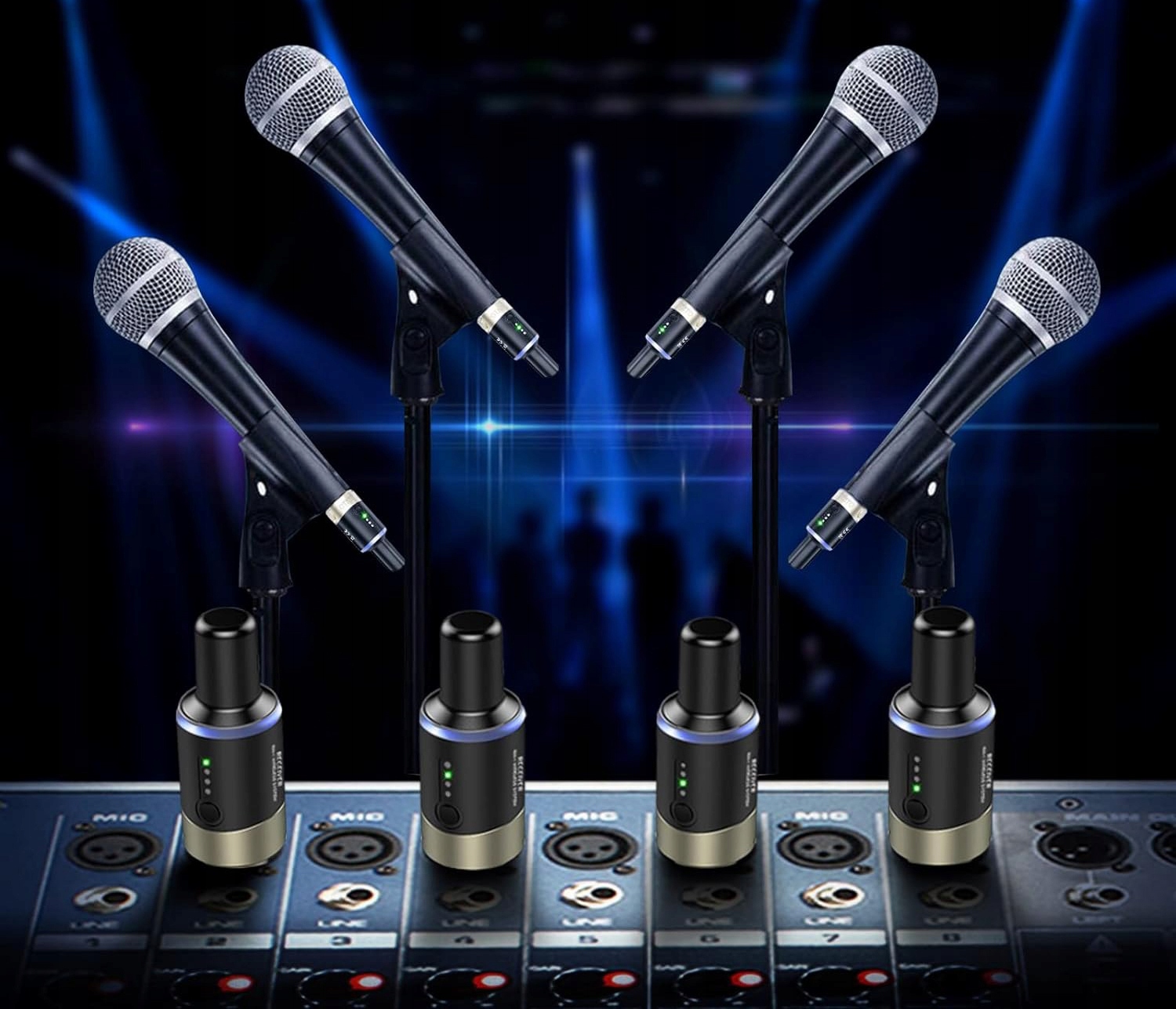Динамический передатчик XLR и приемник XLR: работает с любым динамическим или гармоническим микрофоном, а также с конденсаторными микрофонами с батарейным питанием. Совместим с аудиомикшерами и акустическими системами, обеспечивает стабильную и надежную беспроводную передачу.
