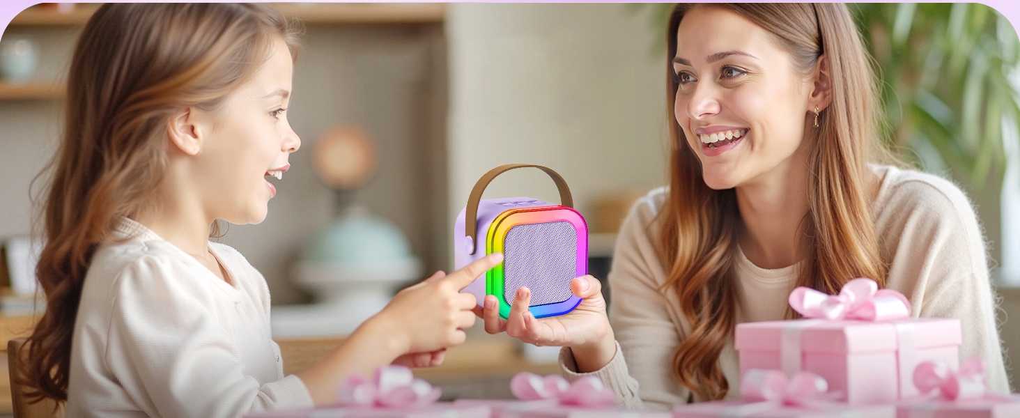 🕺🏻 Миниатюрный караоке-аппарат для детей и взрослых, детский караоке-микрофон с динамиком и функцией пения, караоке-плеер с 2 беспроводными микрофонами для вечеринки, подарок на день рождения для девочек 4, 5, 6, 7, 8, 9, 10 лет, 12+ лет (фиолетовый)