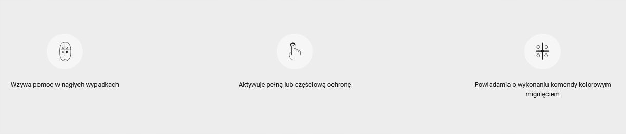 Четырехновированное кольцо клавиши используется для вооружения и разоружения дома b>. Нажатие кнопки экстренной помощи приводит к вызову помощи. Кольцо с ключом оснащено аккумулятором , благодаря которой оно готово работать после удаления из коробки без необходимости демонтажа. Подключается к концентратору, используя One Click в мобильном приложении.