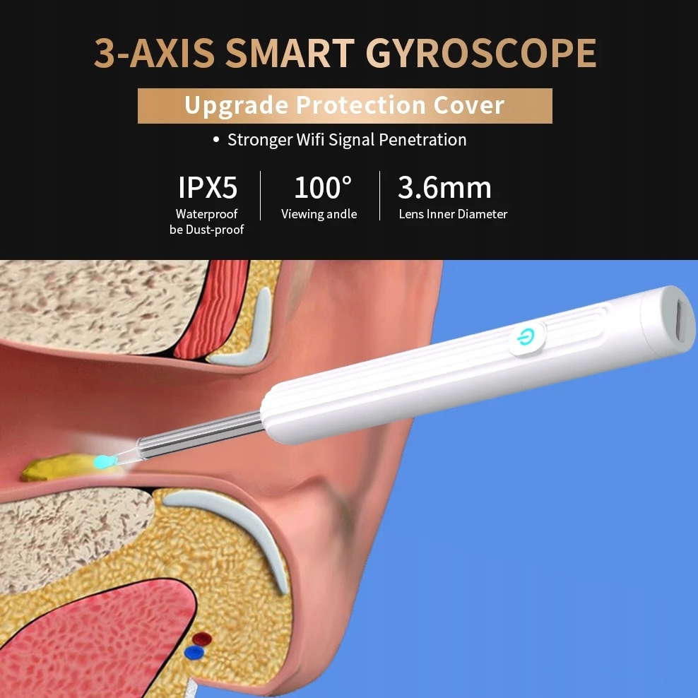 Беспроводной эндоскоп для очистки ушной серы WiFI HD эффективно удаляет стойкие скопления ушной серы, визуально просматривая недоступные участки.