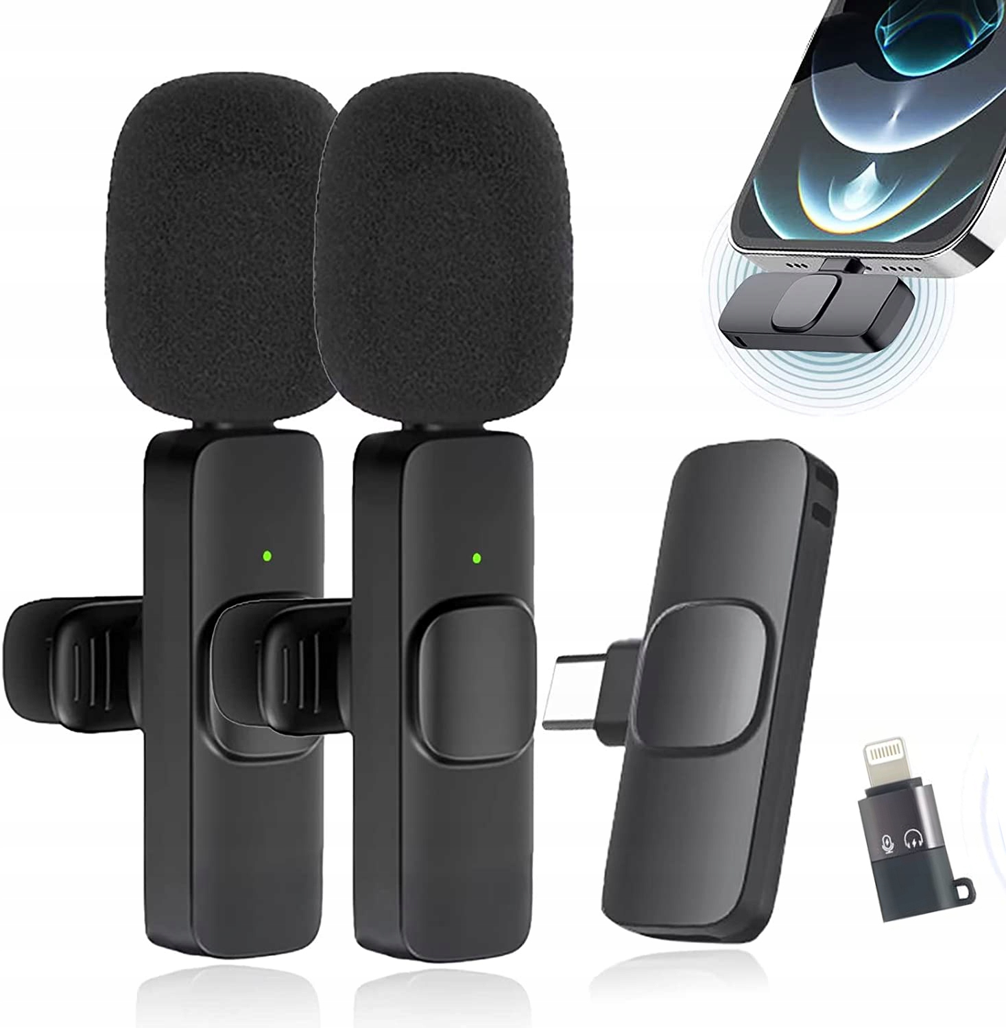 ⭐【Петличный микрофон «Подключи и работай»】: просто подключите приемник напрямую к смартфону, планшету или ноутбуку. Передатчик и приемник автоматически соединятся одной кнопкой при включении питания. Никаких приложений или Bluetooth не требуется. Мы включили адаптер интерфейса Type-C для Lighting, который позволяет использовать микрофон на различных устройствах.