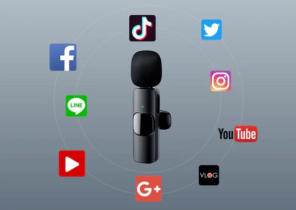Беспроводной микрофон состоит из двух частей: одна — передатчик микрофона, другая — приемник. Его можно использовать в прямых онлайн-трансляциях, видеозаписях в блогах, программных интервью, записи, видеообучении и других случаях.