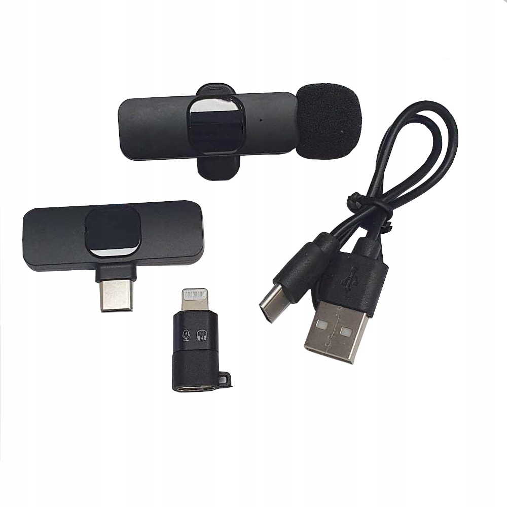Петличный микрофон, приемник USB-C + адаптер Lightning.