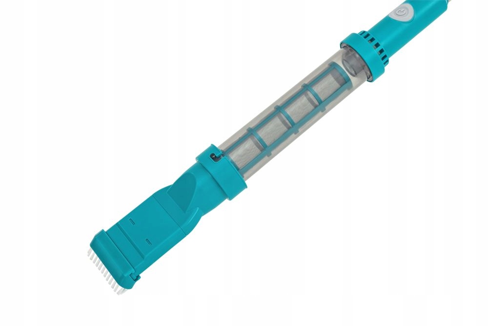 Пылесос AquaTech® легко соберет все загрязнения в специальной стеклянной грязевой камере, а даже самые мелкие останутся в алюминиевом фильтре. Вы сможете легко и быстро удалить листья, траву, насекомых, песок и мелкие примеси, обнаруженные в воде. Особая компактная форма подвижной всасывающей головки со щетками позволяет тщательно очищать стенки и дно резервуара, а узкая «всасывающая» насадка позволяет добраться до труднодоступных углов и щелей. Щетки средней жесткости в нижней части насадки пылесоса обеспечивают оптимальную очистку стенок и дна, а складная алюминиевая телескопическая ручка позволяет эффективно маневрировать чистящей насадкой. Благодаря регулируемой длине штанги (3 элемента) она идеально подходит как для маленьких, так и для больших бассейнов, джакузи или СПА. Пылесос очень удобен в использовании, а благодаря системе поперечных щеток очень точен и эффективен. Независимо от размера и формы вашего бассейна или джакузи, вы сможете эффективно очистить каждый его уголок. После очистки контейнер для мусора следует вынуть, чтобы опорожнить и удалить накопившуюся в нем грязь. После очистки пригоден для повторного использования.