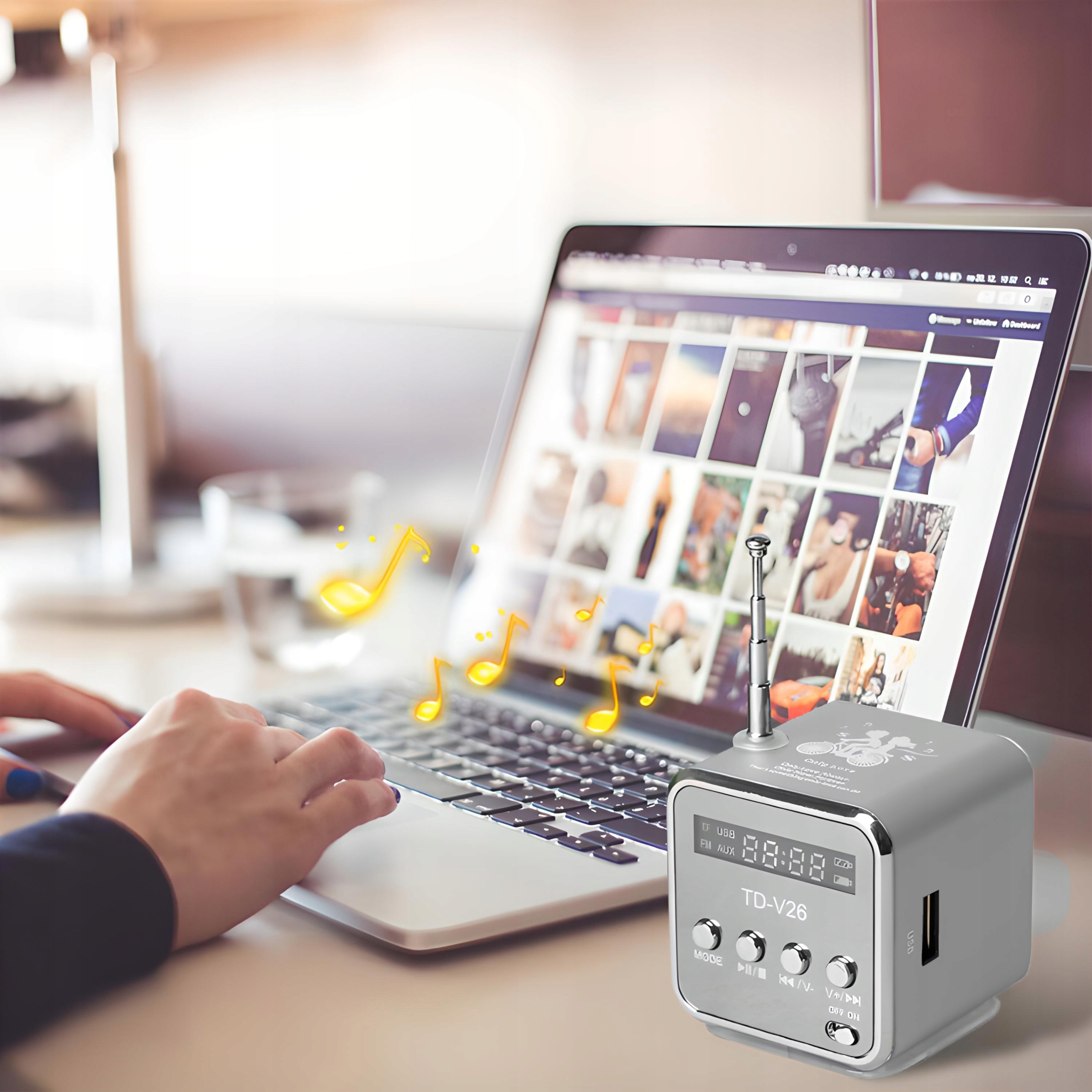 Mini Radio - это в основном много устройств в одном! В дополнение к тюнеру, устройство оснащено MP3 Player, Bluetooth, Miniusb Socket и USB и MicroSD (TF) слотом. также имеет вход в наушники Mini Jack 3,5 мм , его можно использовать в качестве динамика для других устройств, например, смартфон. В свою очередь, выходы на наушниках мини-Jack 3,5 мм и AUX в гнезде для внешних динамиков.