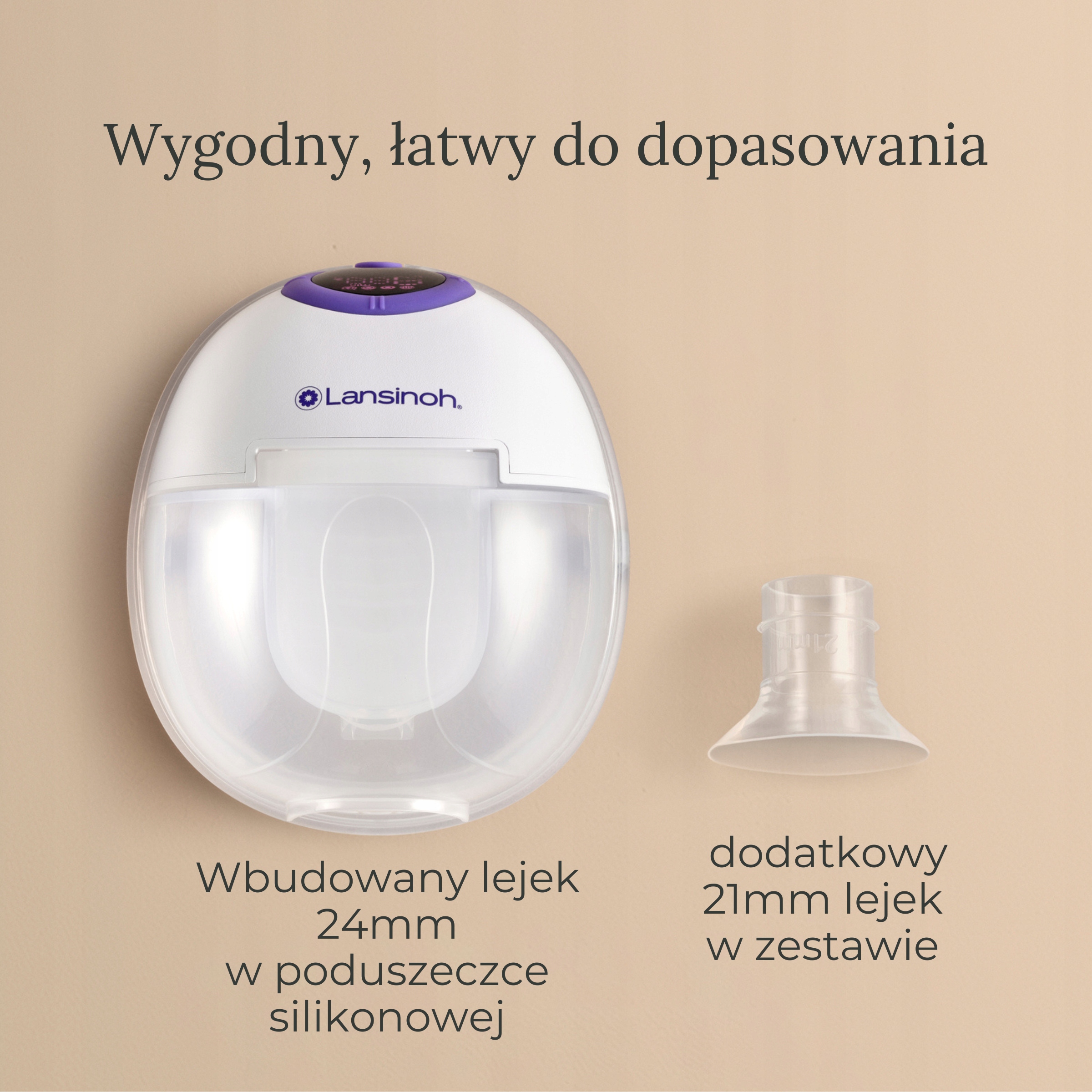 Совершенно не требуя использования рук, удобный насос молокости Lansinoh, осторожно подходит в бюстгальтере, без труб и кабелей, что позволяет портативному вытягиванию в любом месте, без компромиссов в диапазоне мощности и качества, которые расположены на уровне больничных насосов груди.