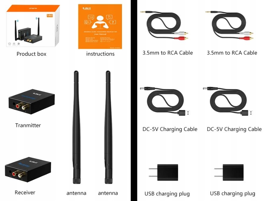 - Гибкое подключение: Аудиопередатчик можно подключить к любому источнику звука, имеющему 3,5-мм дополнительный разъем и выход RCA. Ресивер можно подключить к любой домашней стереосистеме, колонкам с 3,5-мм дополнительным входом и входом RCA.