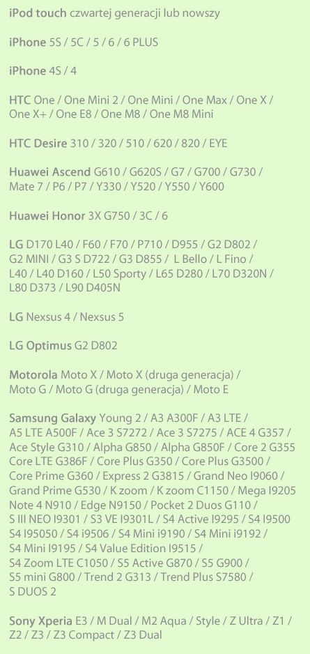 Пульт дистанционного управления работает, среди прочего: вкл. со следующими смартфонами: