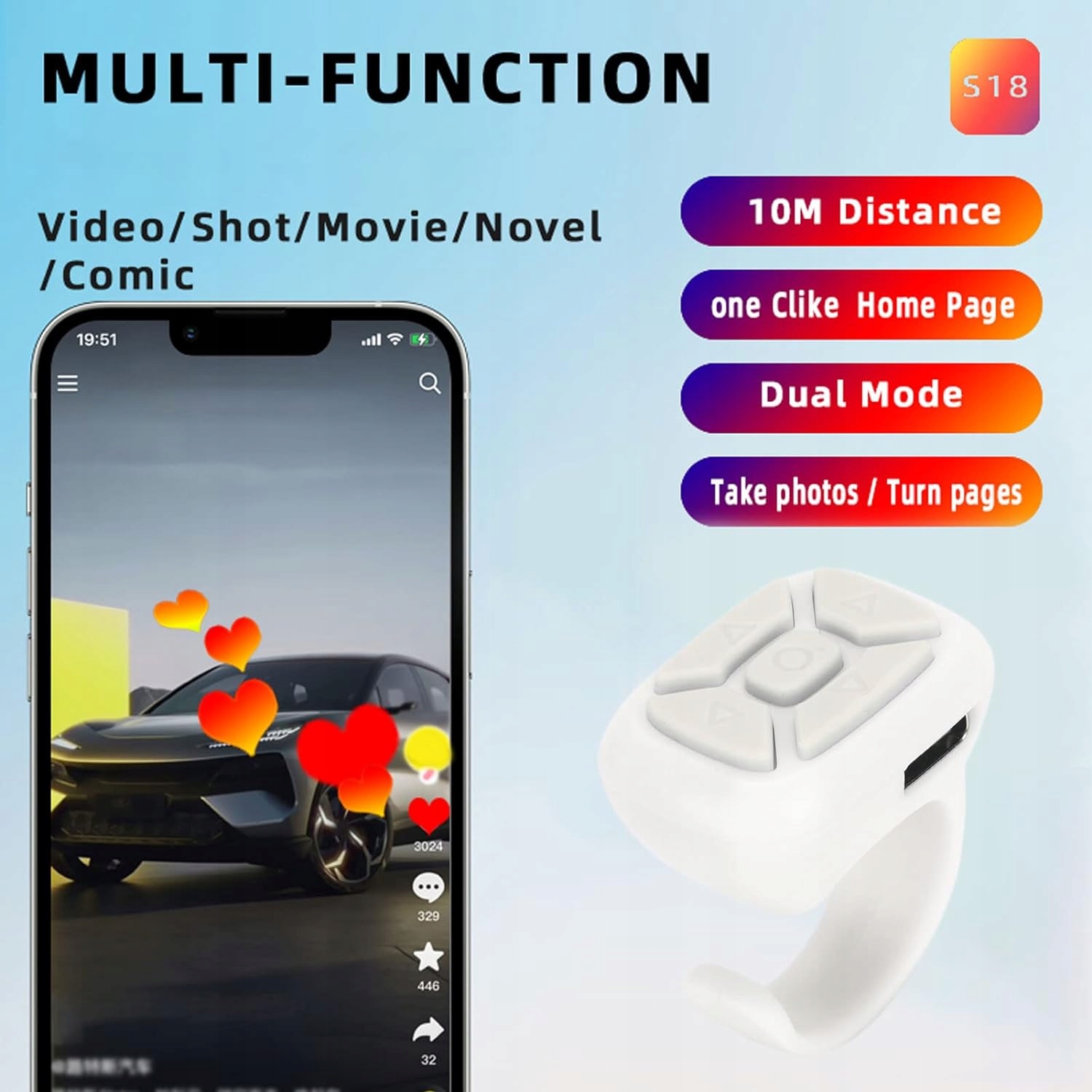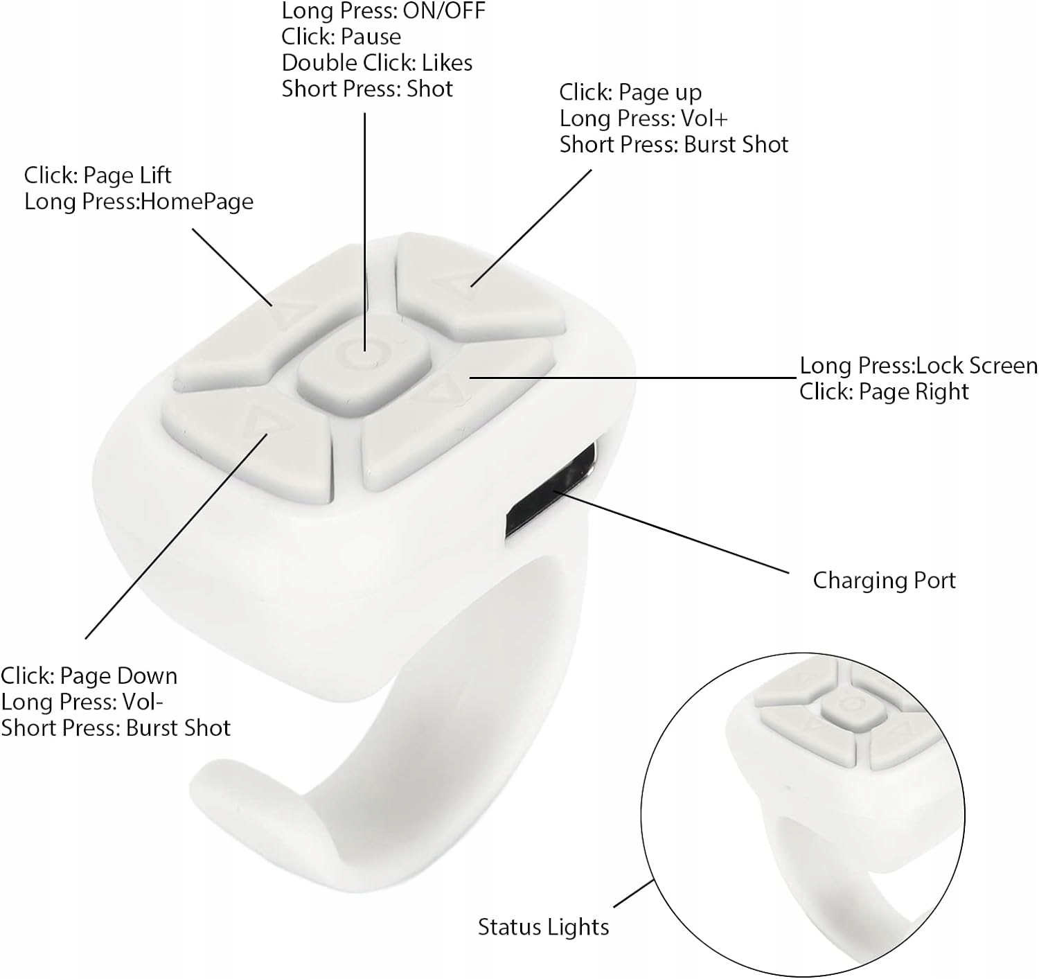Многофункциональность благодаря подключению BT позволяет управлять перелистыванием страниц вверх и вниз, перелистыванием страниц влево и вправо, увеличением и уменьшением громкости, приостановкой воспроизведения, например непрерывной съемкой фотографий, записью видео и другими операциями на телефоне или планшете, освобождая руки. . Умное кольцо, дизайн кольца делает его более удобным для ношения на пальце, стабильное соединение BT 5.3, плавная и стабильная работа, готово к использованию, легко устанавливается, перезаряжается, время одной зарядки составляет 72 часа без частой зарядки. Page Turner Прекрасно управляет страницей, можно выполнять сложные операции, например, переход к предыдущему или следующему видео. Примечание. Если у вас iOS, необходимо включить дополнительную сенсорную функцию системы. Управление камерой телефона Вы можете удаленно управлять телефоном для фотосъемки и записи видео, нажимая кнопку «вверх» или «вниз» на кольце на расстоянии до 10 м. Приложения: фотосъемка, запись видео, просмотр видео, чтение романов и т. д. Широкое применение верхней левой и нижней правой кнопок этого продукта соответствует перемещению экрана телефона вверх, вниз, влево и вправо, вы можете выполнять различные операции на телефоне, операция зависит от вашего воображения и намного превышает возможности функций. мы представили.