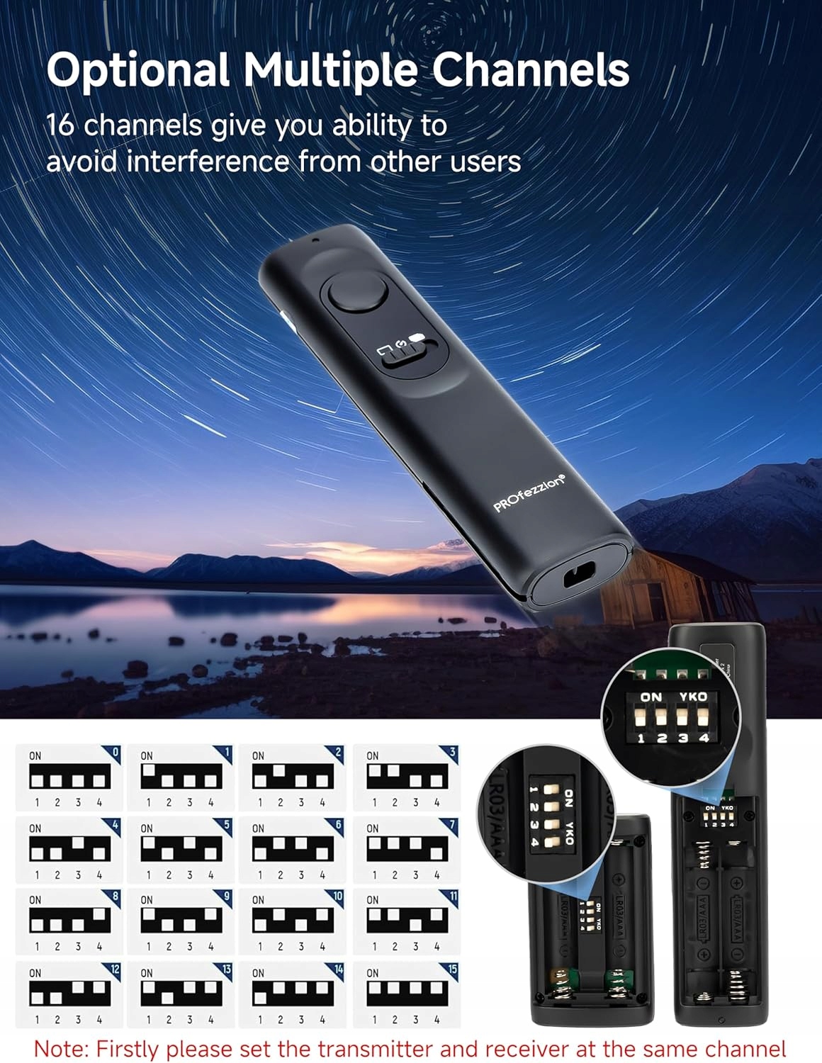 - Пользовательская конфигурация: набор включает в себя съемный зажим, позволяющий подключить передатчик к ручке панорамного стержня для использования; Набор также включает в себя батареи AAA для передатчика и приемника