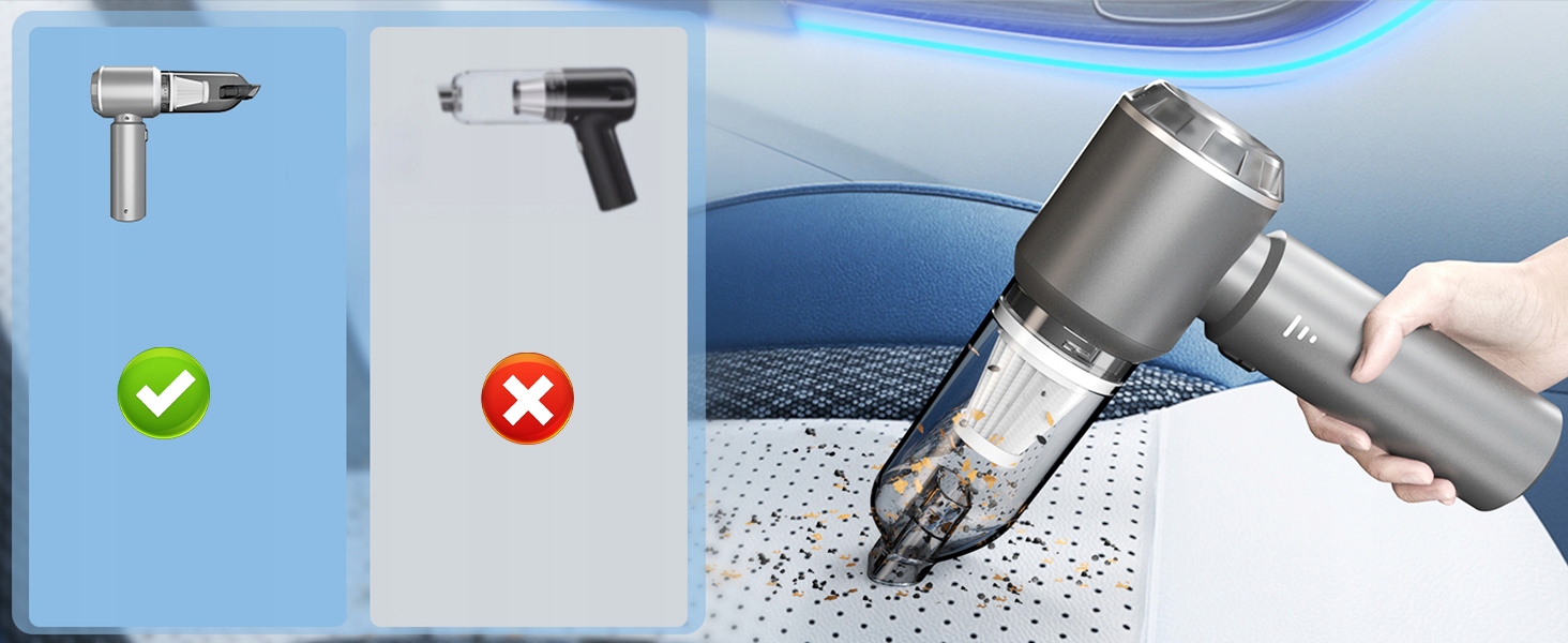 - В этом беспроводном автомобильном пылесосе, улучшенный, быстрый бесщеточный Двигатель для высокой производительности был использован. и песок скрыт в автостоянках или диванах. Литийная батарея 6000 мАч, этот портативный беспроводной вакуумный очиститель может быть полностью заряжен в течение 3-3,5 часов и обеспечивает до 12 минут автономии в высоком режиме, 18 минут в среднем режиме и 18 минут в низком режиме LI> Уровень шума длится на уровне ниже 80 дБ, что обеспечивает тихую очистку