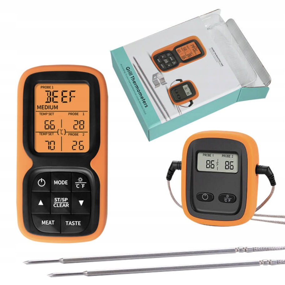 БЕЗДРОТОВИЙ ТЕРМОМЕТР ДЛЯ М'ЯСА 2 x ЗОНД ДЛЯ БАРБЕКЮ