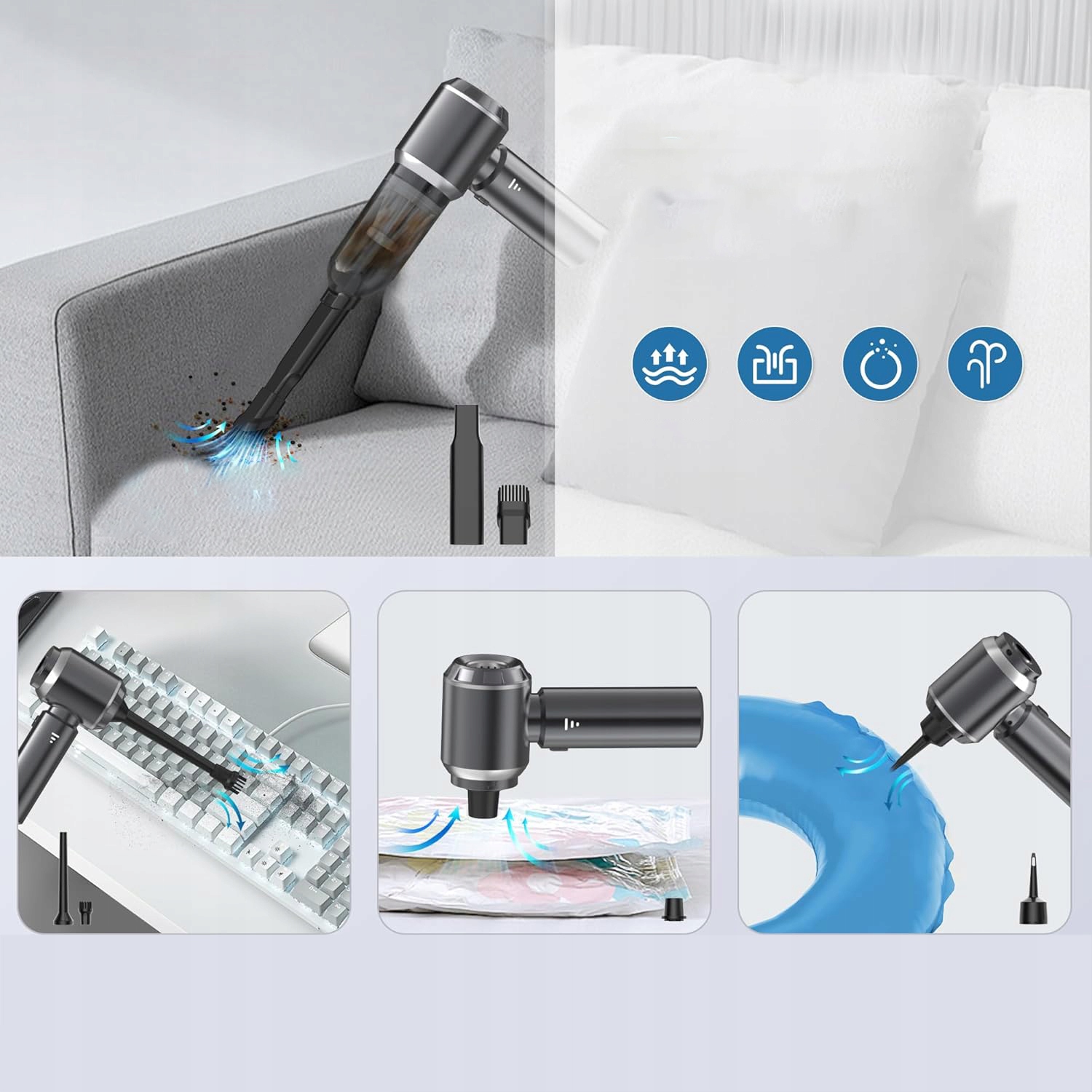 ✔ Набор аксессуаров - В наборе вы найдете практические аксессуары для очистки узких зазоров, клавиатур и удаления пыли путем продувания.