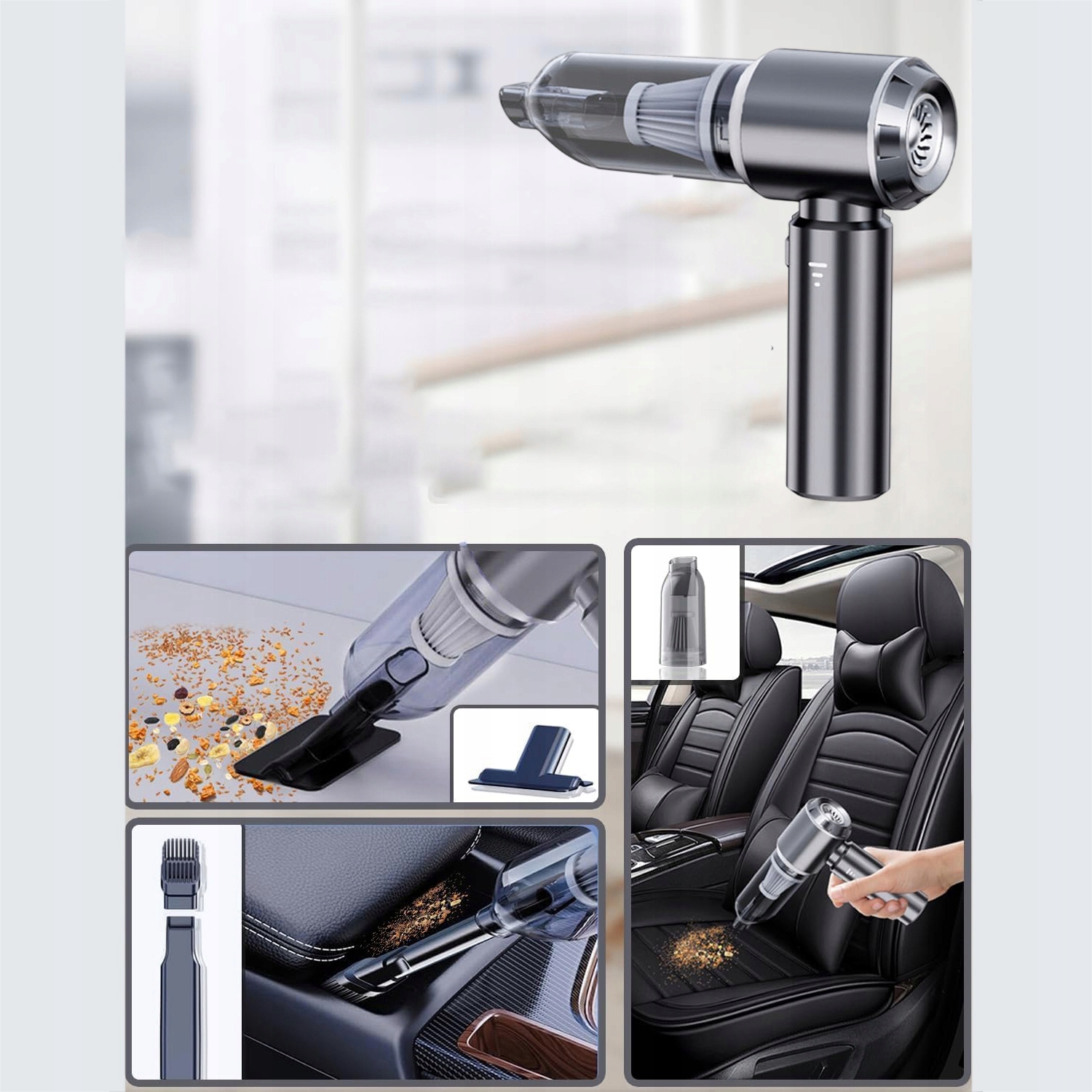 ✔ Универсальность в каждом дюйме - этот инновационный пылесос является реальной комбинацией чистоты ! Он сочетает в себе функции пылесос, продувки и перекачки , даже имея дело с самой сложной грязью. Это узкие зазоры в клавиатуре , постоянные пятна на креслах или песок и листья в машине - все исчезает в мгновение ока!