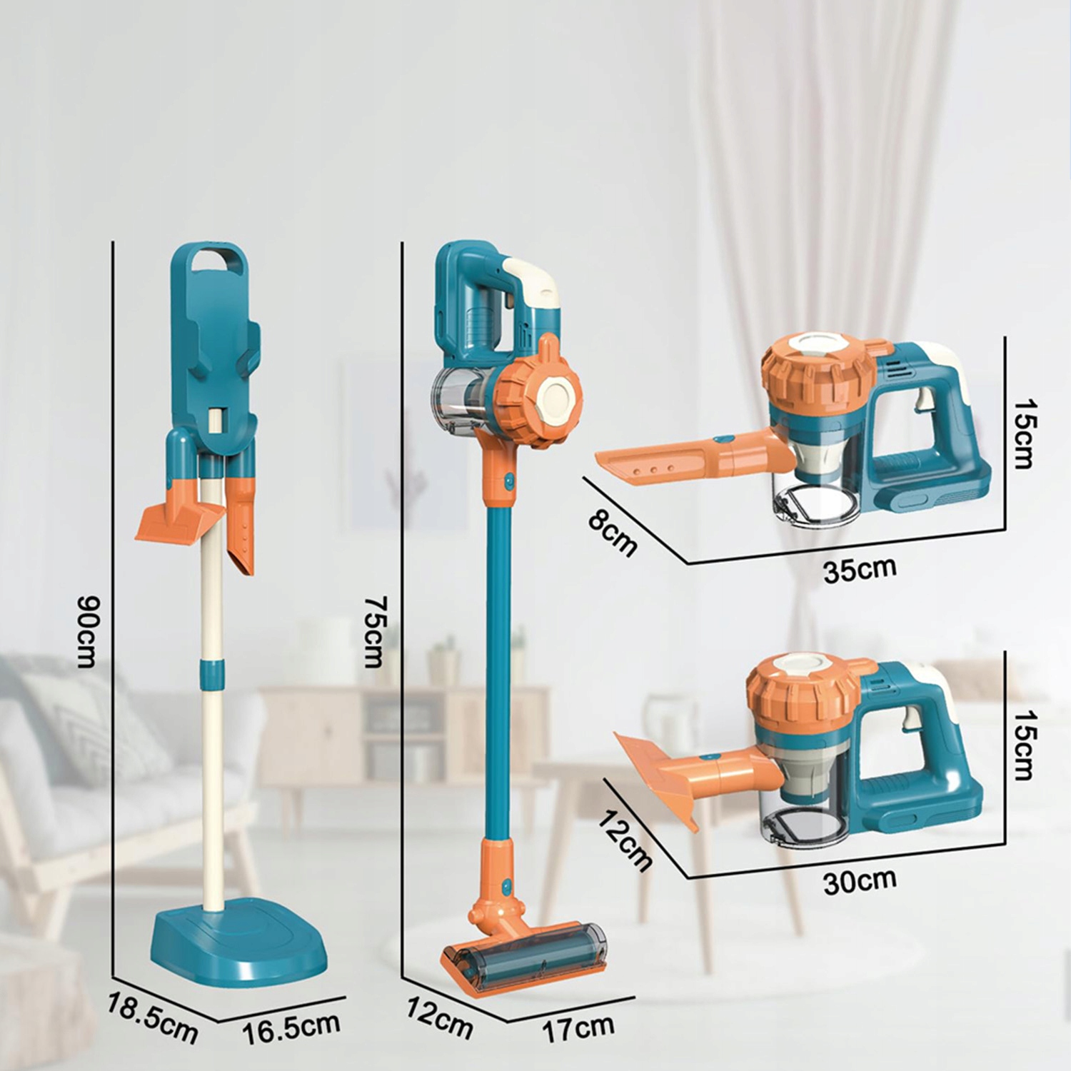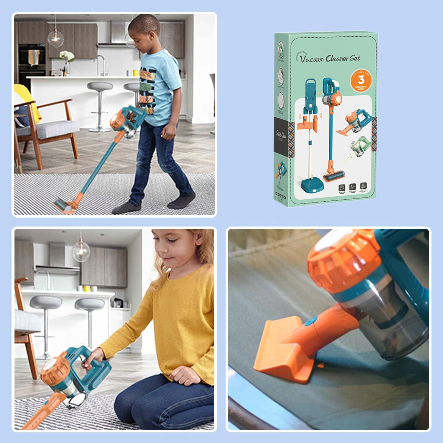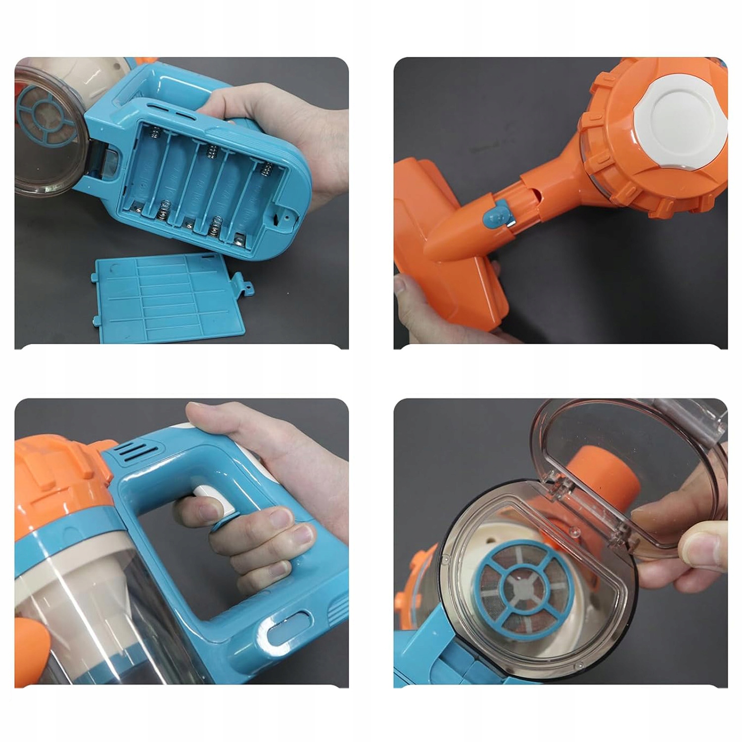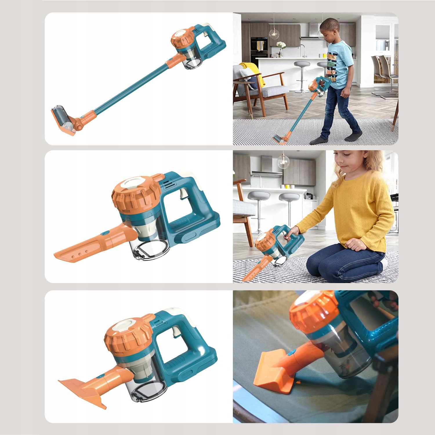 - ☑️- Игрушечный пылесос выглядит, издает звуки и работает практически идентично настоящему пылесосу. Он имеет низкую мощность всасывания и может втягивать небольшие кусочки бумаги, обеспечивая реалистичную уборку.