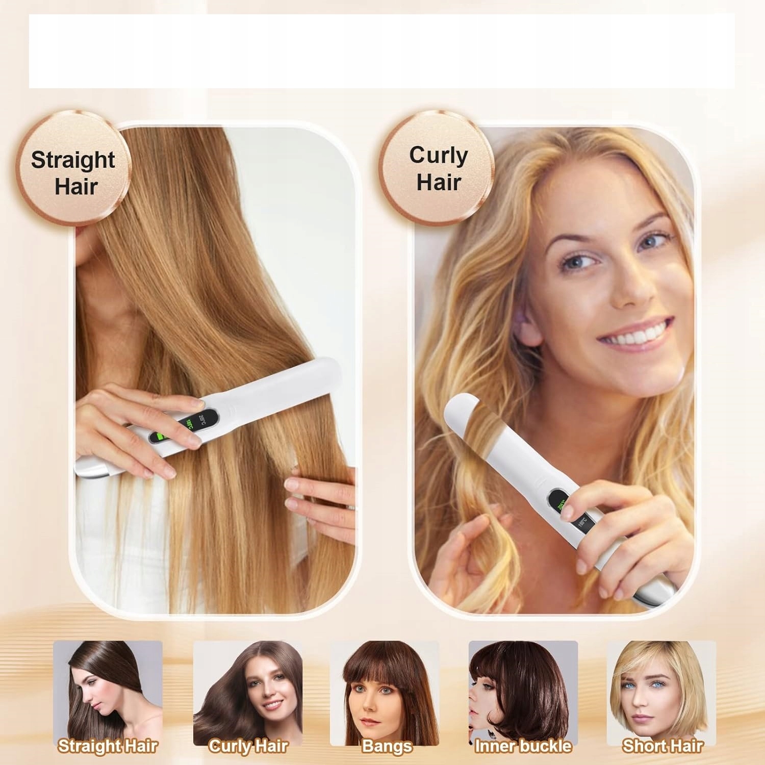 - Портативный выпрямитель для волос — с помощью беспроводного мини-выпрямителя для волос вы сможете идеально поправить челку, каркас волос или хвост. Идеальное решение для коротких, тонких, нежных волос и челки, не рекомендуется для очень густых и длинных волос. Высококачественная керамическая нагревательная пластина может уменьшить статический заряд, придать волосам шелковистый эффект и защитить их. С этим компактным выпрямителем вы получите более здоровые, мягкие, гладкие и блестящие волосы.