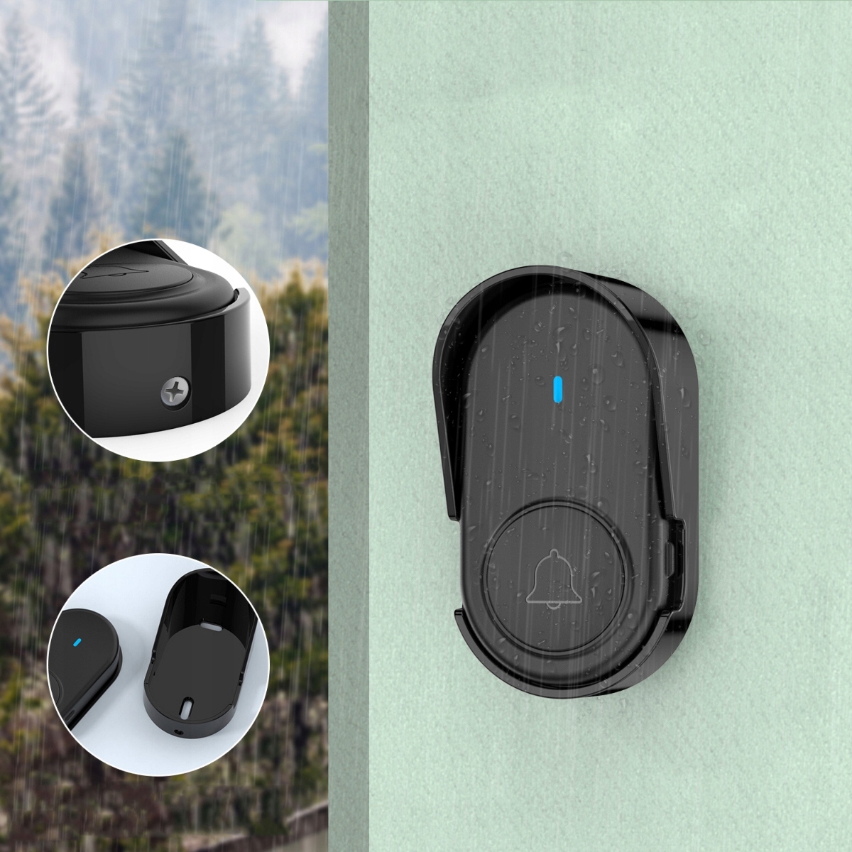 - ВОДОНЕПРОНИЦАЕМОСТЬ (IP44) - беспроводной дверной звонок устойчив к суровым погодным условиям, прекрасно переносит дождь и снег.
