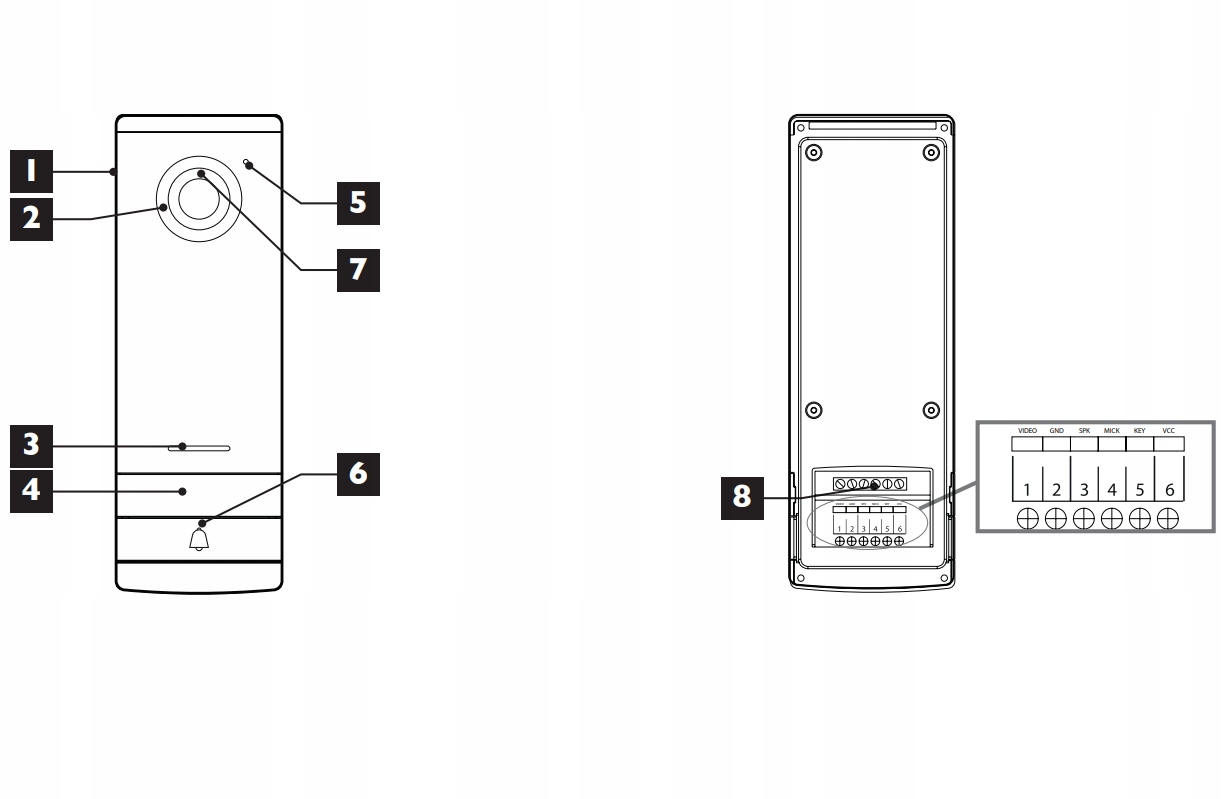- Питание для электрозащелки: питание от видеодомофона (макс. 12В/1А)
