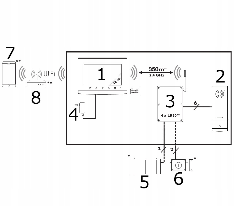 ➡️ БЕСПРОВОДНАЯ СВЯЗЬ СВЯЗЬ МЕЖДУ МОНИТОРОМ И ВЫЗВНОЙ ПАНЕЛИ - ДАЛЬНОСТЬ ДО 350М НА ОТКРЫТЫХ ПЛОЩАДКАХ
