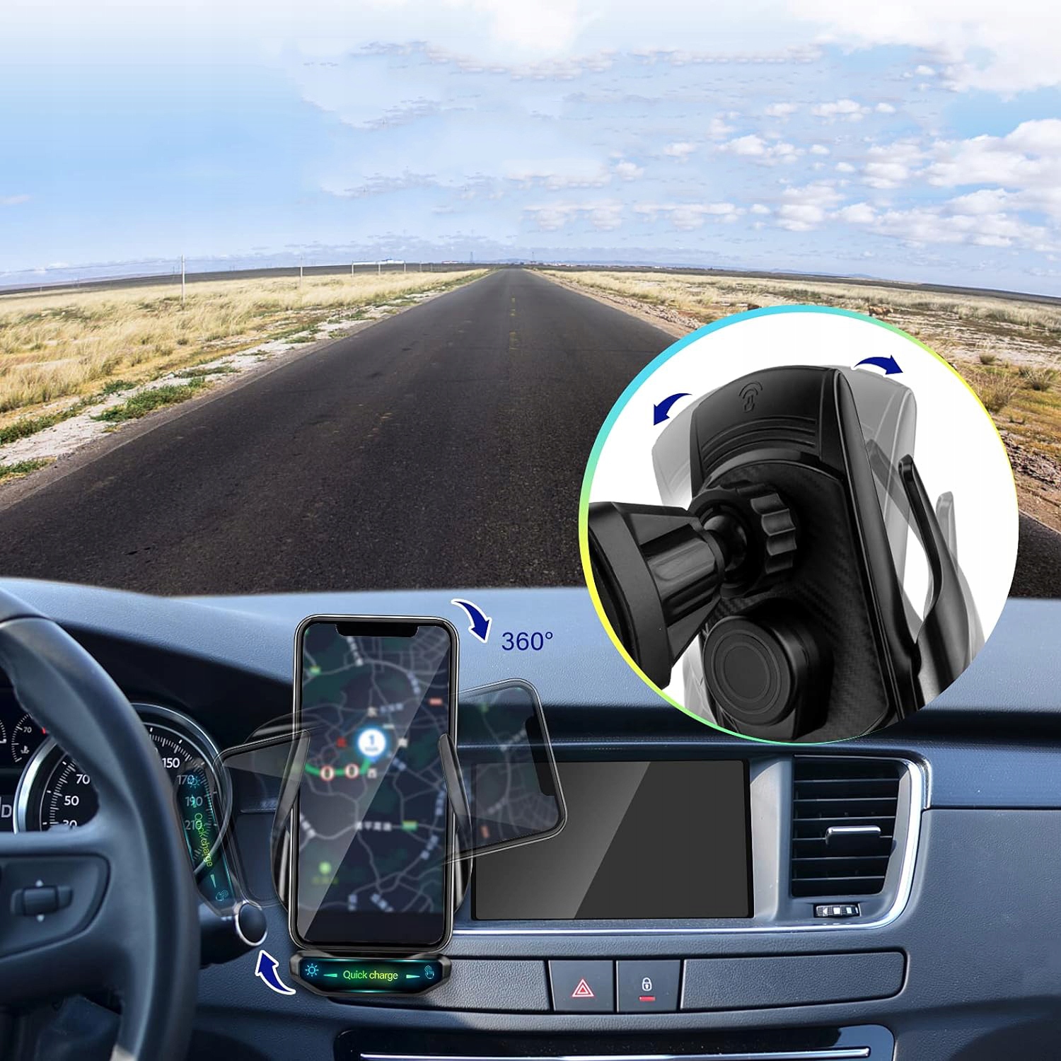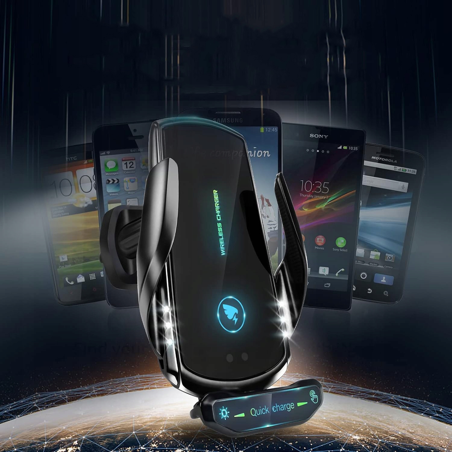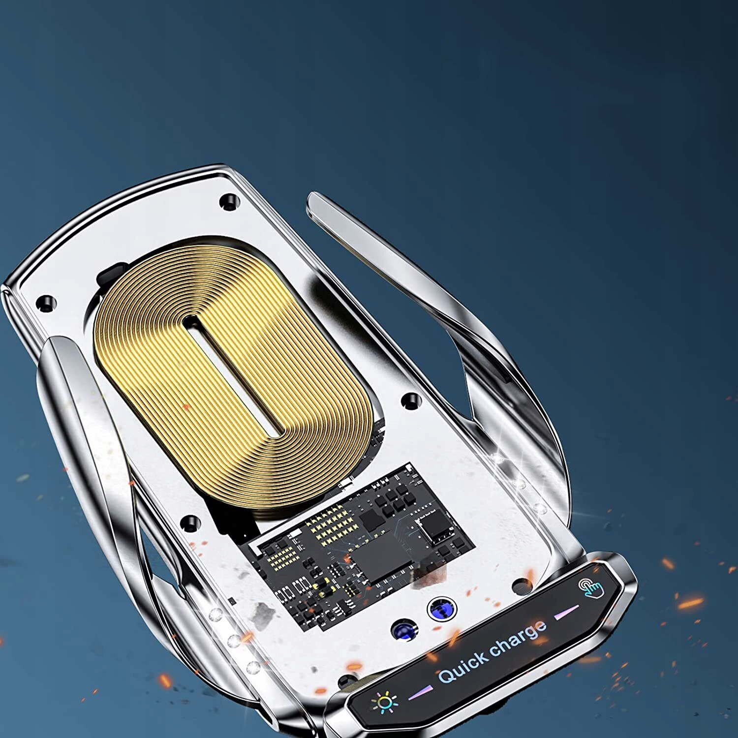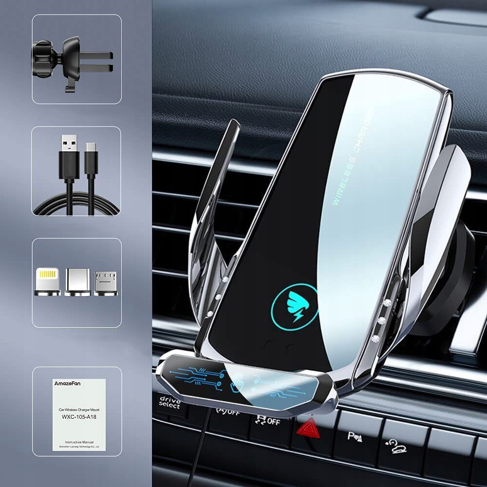 📳【Сенсорный интеллектуальный автоматический зажим】Этот интеллектуальный сенсорный держатель сотового телефона для беспроводного автомобильного зарядного устройства только одной рукой будет близко к кронштейну, два рычага кронштейна автоматически открываются или сжимаются, интеллектуальная идентификация телефона и быстрая зарядка. Как только телефон полностью заряжен, автоматический зажим беспроводного автомобильного зарядного устройства автоматически выключится, чтобы защитить аккумулятор вашего телефона.