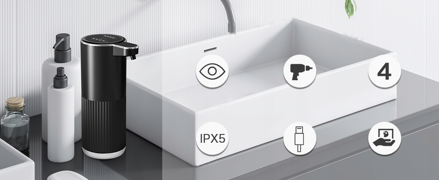 🧴Монтаж на стене и на столешнице: Независимо от планировки вашей ванной комнаты и того, как вы хотите разместить автоматический дозатор пены, вы можете выбрать один из двух способов крепления (на столешнице и на стене). Благодаря этому вы всегда будете поддерживать порядок в своей комнате!