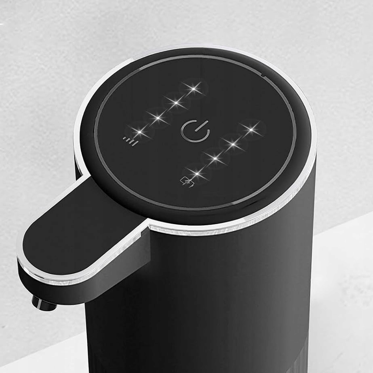 🧴4-уровневая регулировка: коснитесь кнопки вверху, чтобы выбрать один из 4 различных объемов мыла, подходящих для различных задач очистки. Уровень 1 предназначен для ежедневного мытья рук, а уровень 4 — для обеззараживания. Количество включенных индикаторов всегда показывает, сколько жидкости выходит, поэтому вы можете регулировать подачу дезинфицирующего средства для рук.