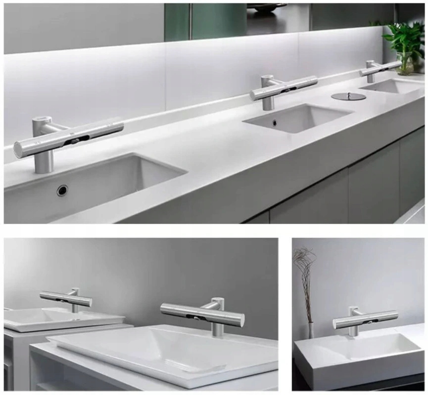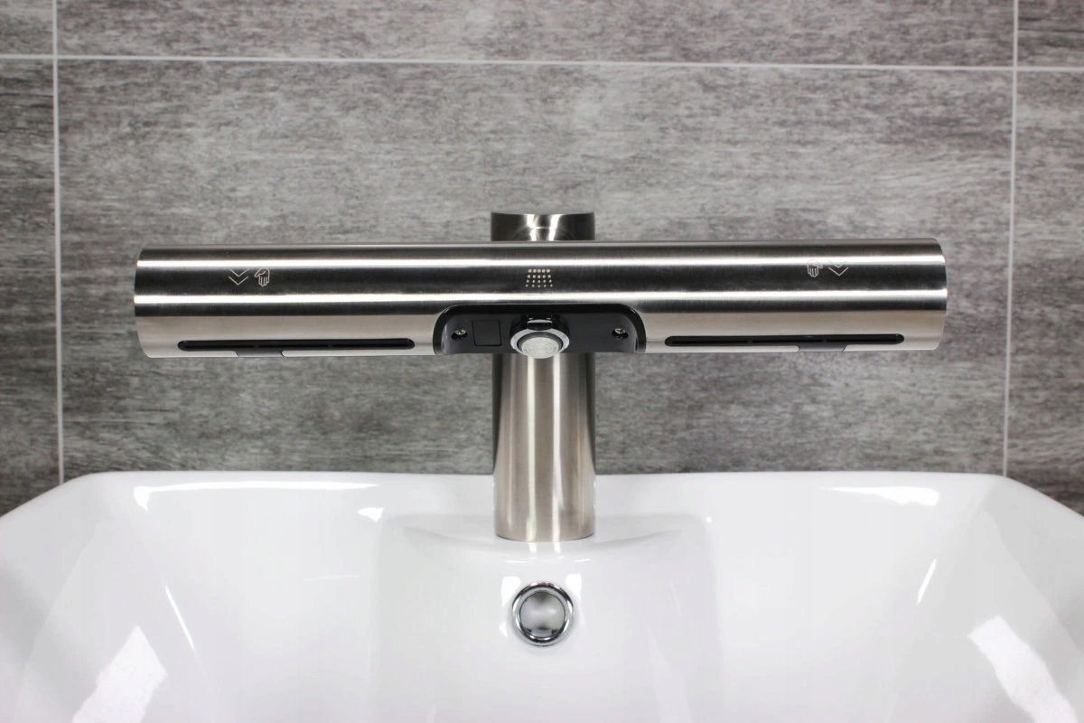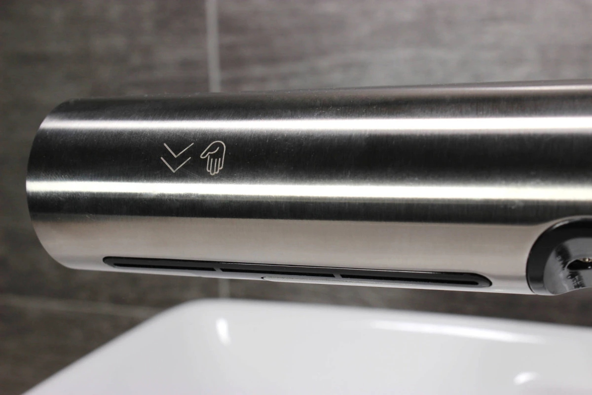 Гигиеническая промывка и высушивание ваших рук никогда не было проще. Положив руки под краном, вода будет автоматически течь при наборе температуры. В середине автоматической батареи есть розетка сушильной форсунки. Запуск также бесконтактный, просто скользите руки и переместите их, как при стирке.