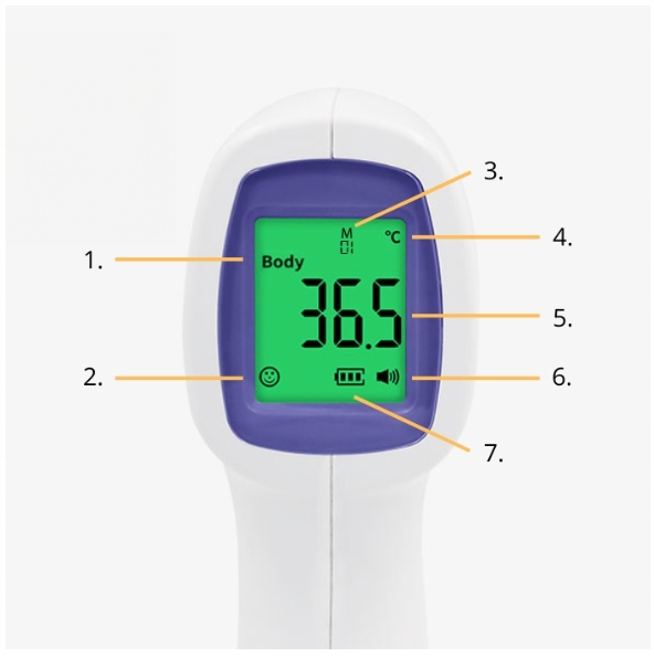 При измерении в режиме температуры тела дисплей термометра меняет цвет в зависимости от полученного результата: