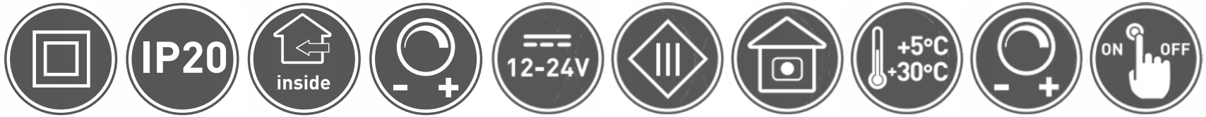 Светодиодный переключатель с регулируемой яркостью + разъем COB, 12 В/24 В, макс. 5 А, IP20 DIMMER