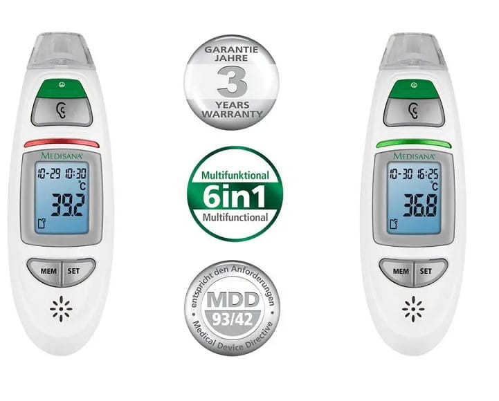 Точное измерение температуры тела или объекта (окружения, предметов и поверхностей). Это медицинский продукт. Автоматически сохраняет последние 30 измерений. Имеет функцию визуального предупреждения о повышении температуры. Автоматическое отключение 0297. Сертификат CE, соответствующий директиве MDD (Медицинское оборудование). Возможность установки времени и даты.