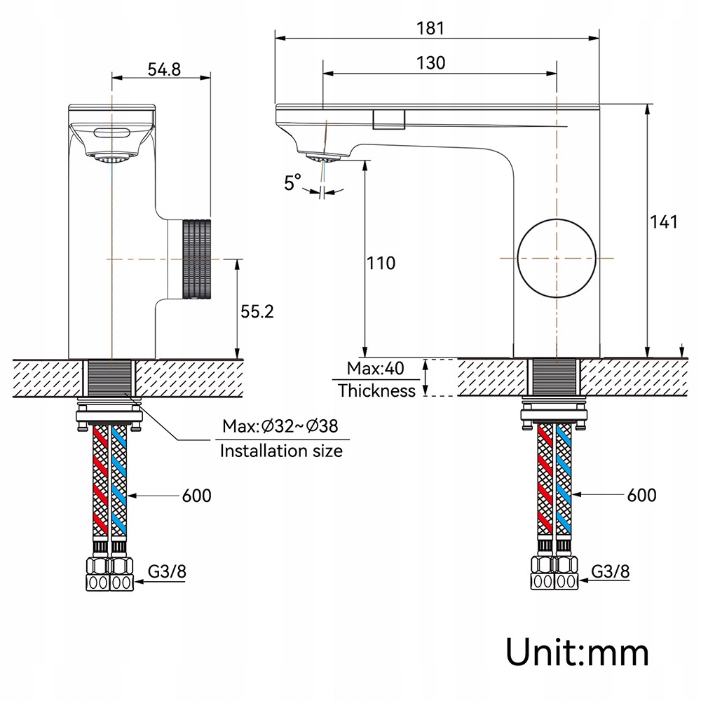 ✔ Монтажное отверстие: 32 мм - 38 мм