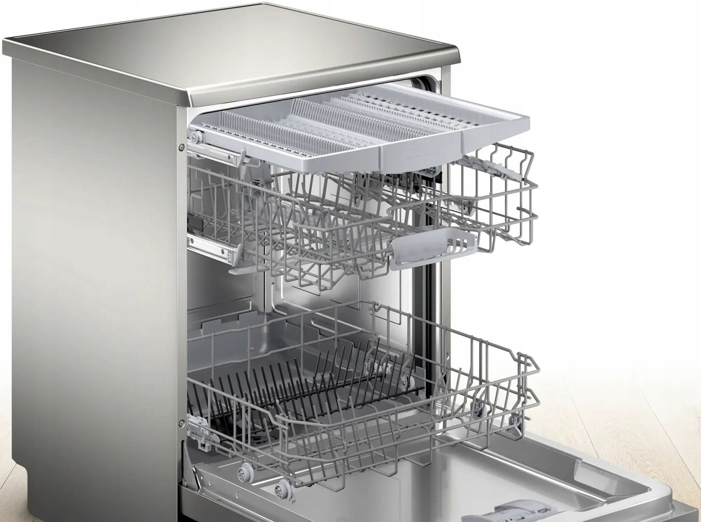 Положение положения верхней корзины стойчной корзины используется для регулировки интерьера на потребности тока. Система позволяет вам изменить настройку корзины на разных высотах, и выбранный элемент может быть легко изменен, даже если корзина заполнена. Благодаря этому вы можете адаптировать интерьер к вашим потребностям даже для очень высоких тарелок в нижней корзине, или высоких очков или кружек в верхней корзине.