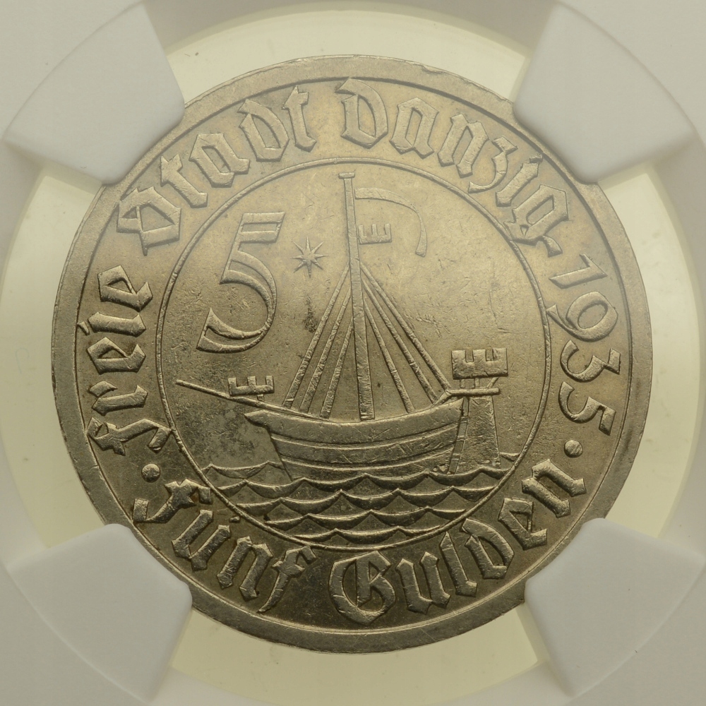 Бесплатный город Гданьск - 5 Guldenów 1935 - Koga - Оценка NGC MS63